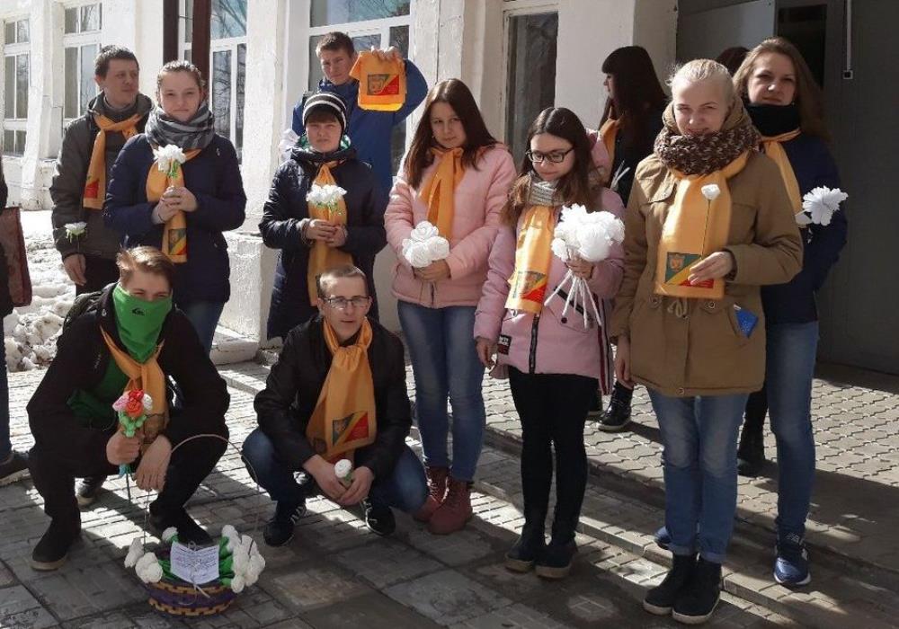 13 апреля в рамках областного марафона «Добрая Вятка» в нашем городе прошла благотворительная акция «Белый цветок». Студенты колледжа педагогики, экономики и права под руководством педагога дополнительного образования О.В. Селивановской предлагали жителям города приобрести белые цветы, которые изготовили воспитанники детских садов «Сказка» и «Рябинка», а также сами студенты.