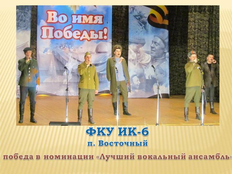 Гран-при и диплом в номинации «Лучший хор» получил коллектив ИК №1 из Котчихи. Первое место заняла омутнинская ИК №17, на втором – общественная организация «Пограничники всех поколений», на третьем – коллектив ИФНС России №3 Кировской области г. Омутнинска.