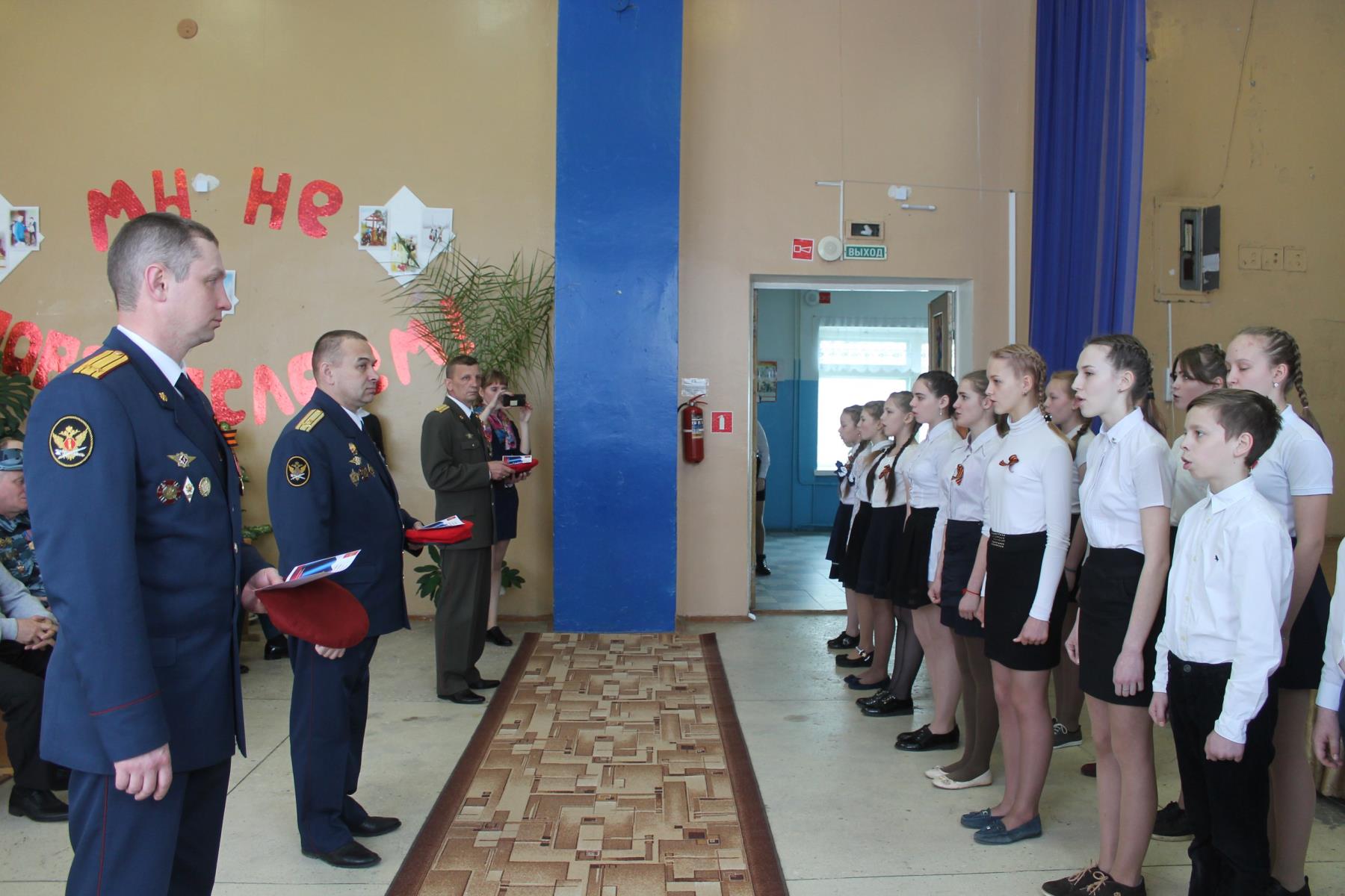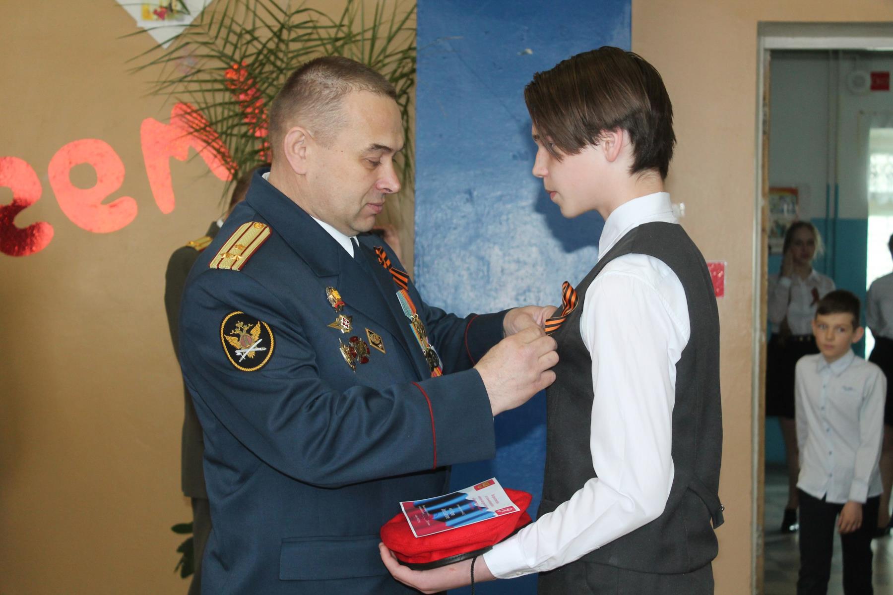 Один за другим ребята получили береты, удостоверения и значки, поклялись в готовности служить Родине. Услышали слова одобрения и напутствия. Затем юноармейцы возложили красные гвоздики к обелиску на главной площади посёлка и приняли участие в параде, посвящённом 73-ей годовщине Победы.
