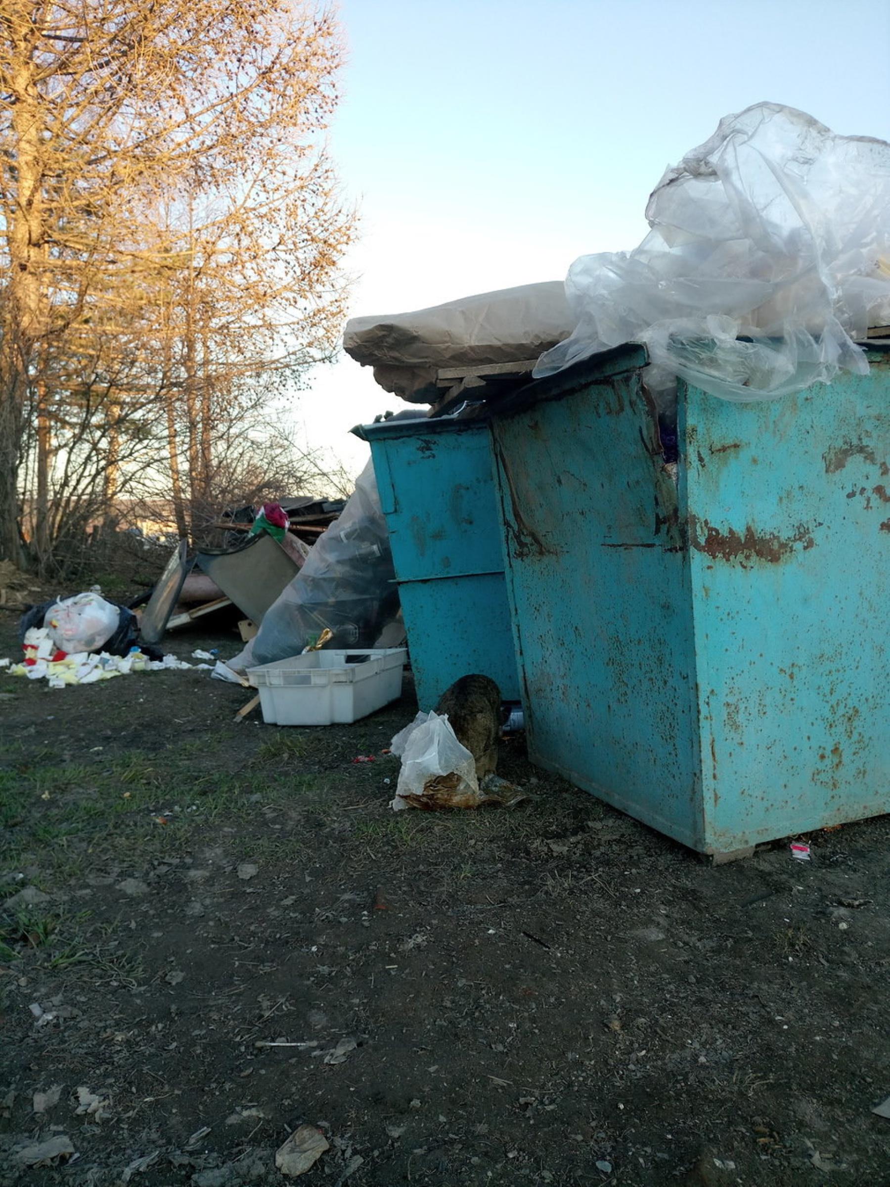 Пакеты с бытовыми отходами, пустые коробки, ветошь и отломленные в соседних ямах бампера автомобилей составляют одну большую груду мусора, на которую приходят полакомиться кошки и собаки, а дети с осторожностью и любопытством выбирают «запчасти машины» для своих игр. Пакеты, разорванные животными, разлетаются вдоль дороги и к близлежащему дому. Безобразие!