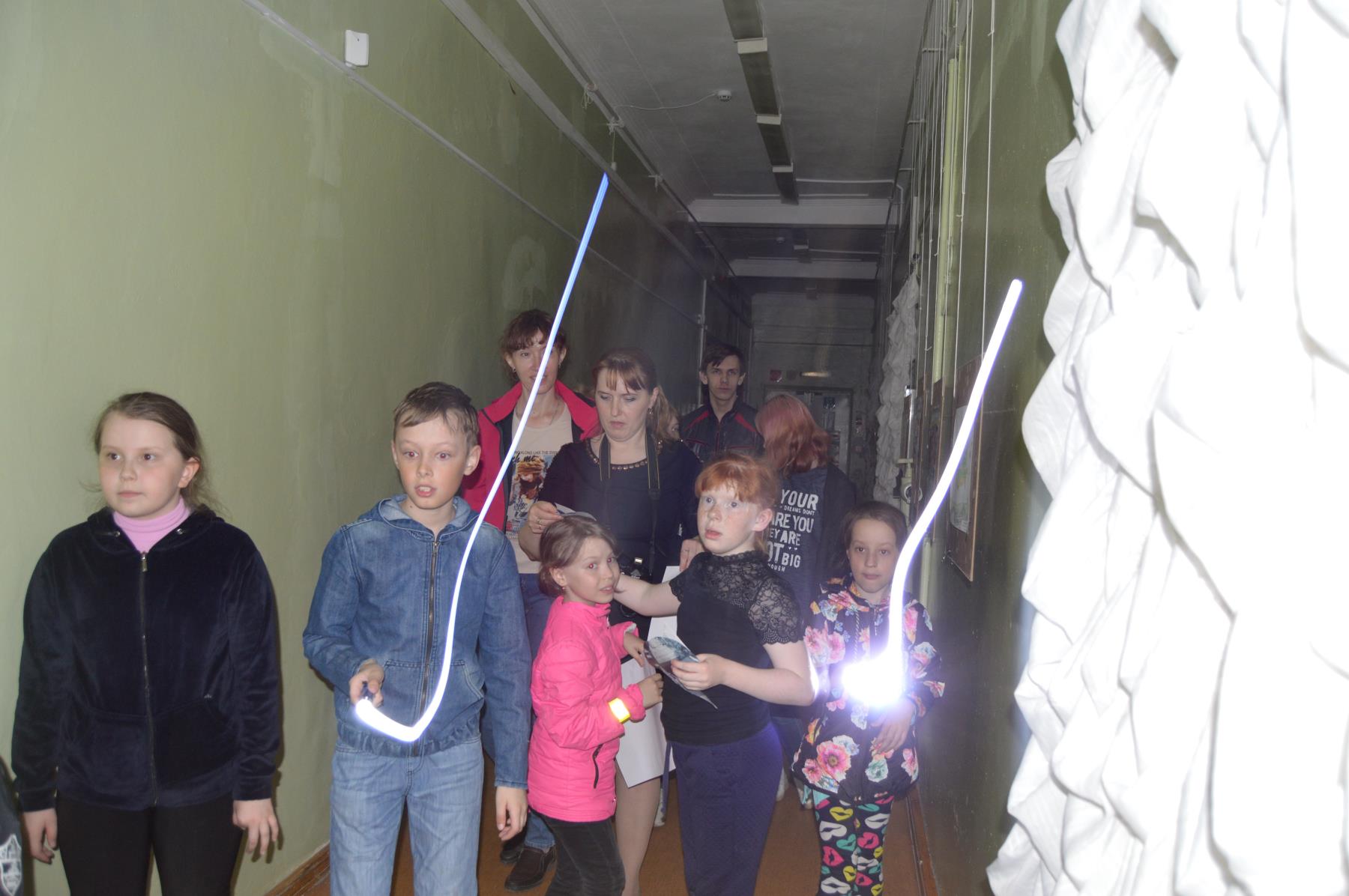Посетителей ждал увлекательный квест, творческие задания, яркие эмоции. Участниками акции стали учащиеся начальных классов городской школы №6. Прежде, чем попасть в сам музей, ребят и взрослых встречала Муза Музея и предлагала ответить на вопросы викторины. Затем участники получали задание — вооружившись фонариками, отыскать в темном помещении части большой картины и правильно их собрать. Приятно, что дети и взрослые хорошо знают историю нашего города и завода.