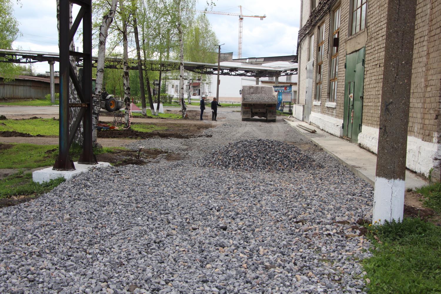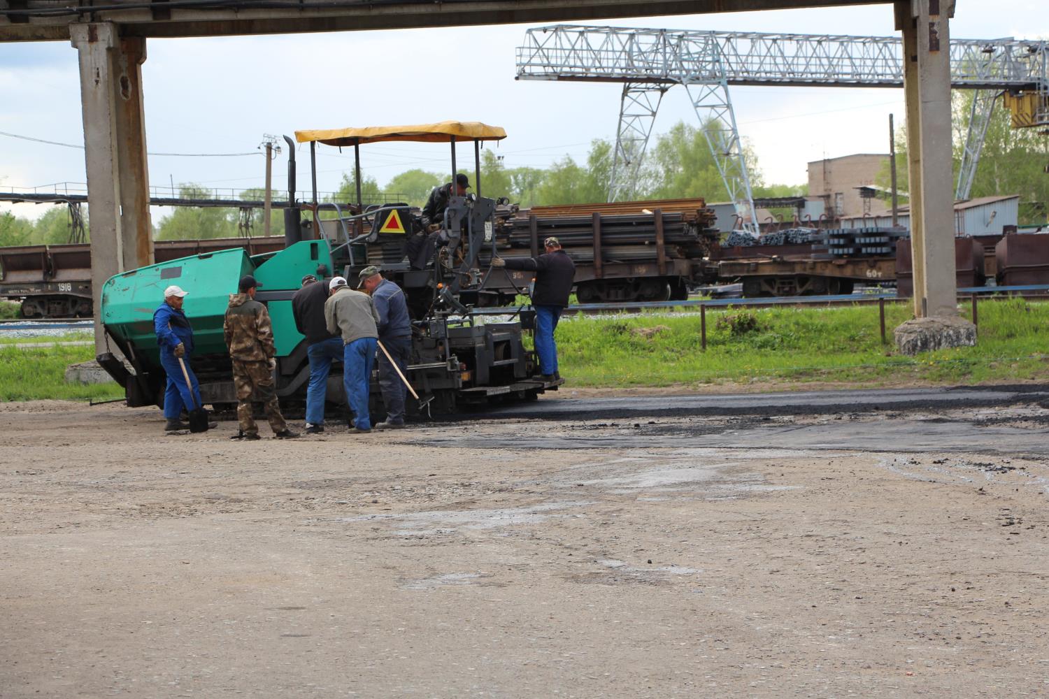Работы по асфальтированию дорожного покрытия на территории предприятия выполняются силами работников МУП ЖКХ Омутнинского района.
