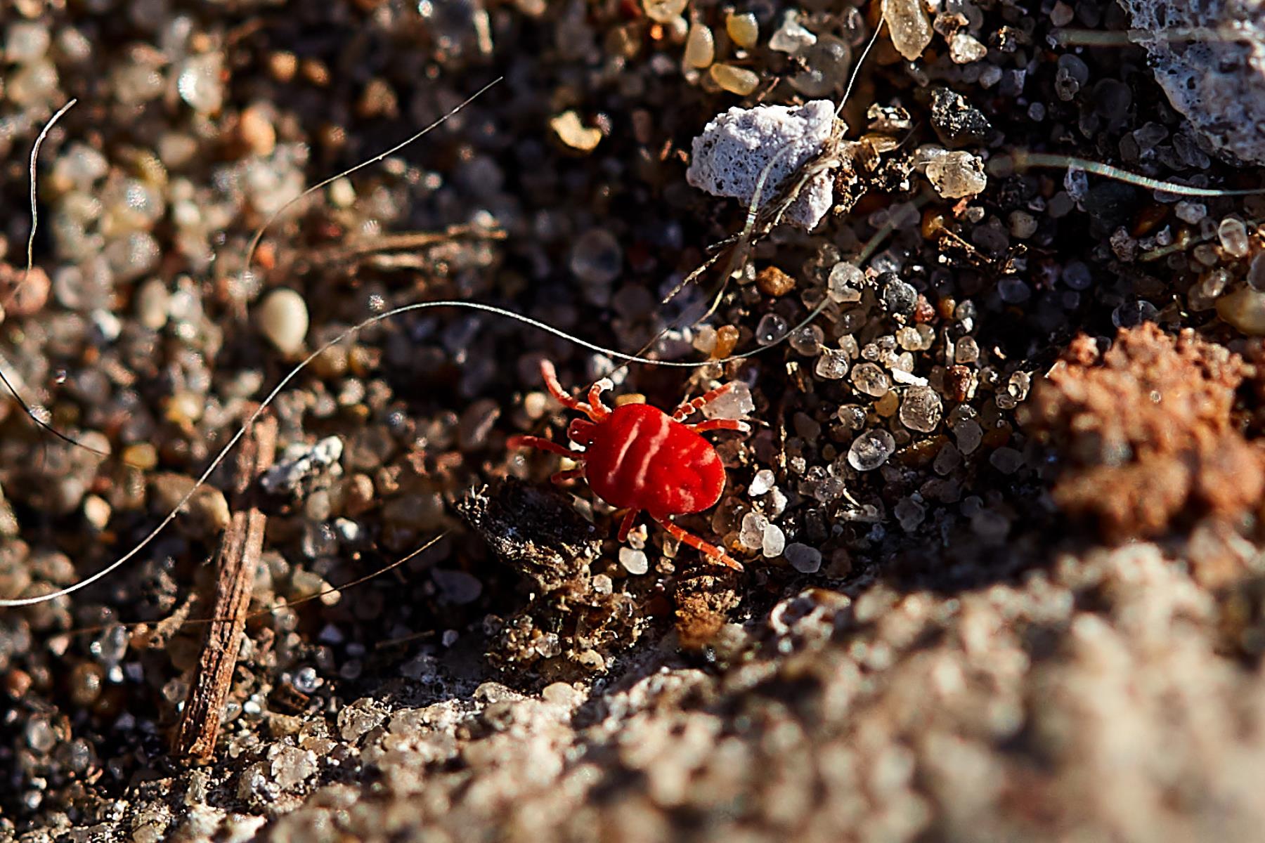 На фотографии «Привлекательный вредитель» запечатлен красный плодовый клещ, очень маленький и медленно передвигающийся персонаж, которого было очень легко сфотографировать у бабушки в саду.
