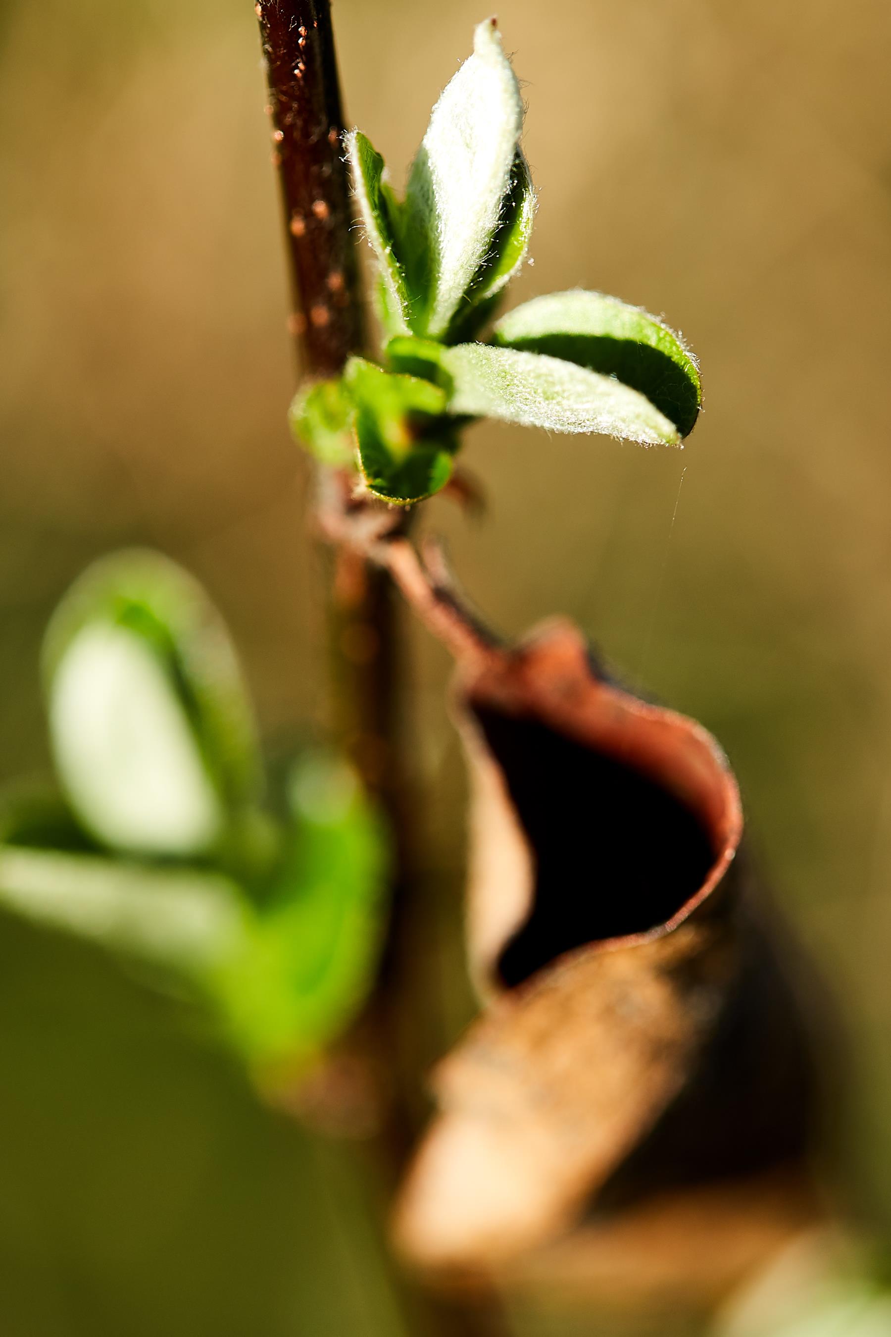 На фотографии запечатлено раскрытие чайного бутона. Кадр был сделан рядом с заварочным чайником в бабушкином саду.