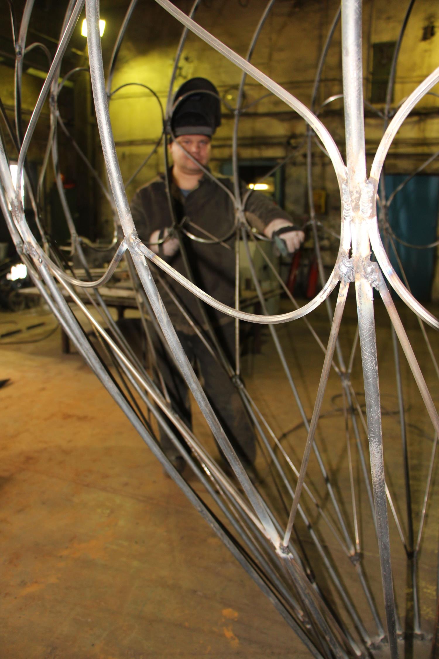 Воплощать идею в жизнь доверили мастеру Сергею Кожину, слесарю-ремонтнику (бригадиру) Александру Миронову и электросварщику Сергею Шатунову. Разработали эскиз и доработали его, потом подыскали отрезки металлической арматуры, согнули и сварили их. В итоге сердце приобрело объемную форму.
