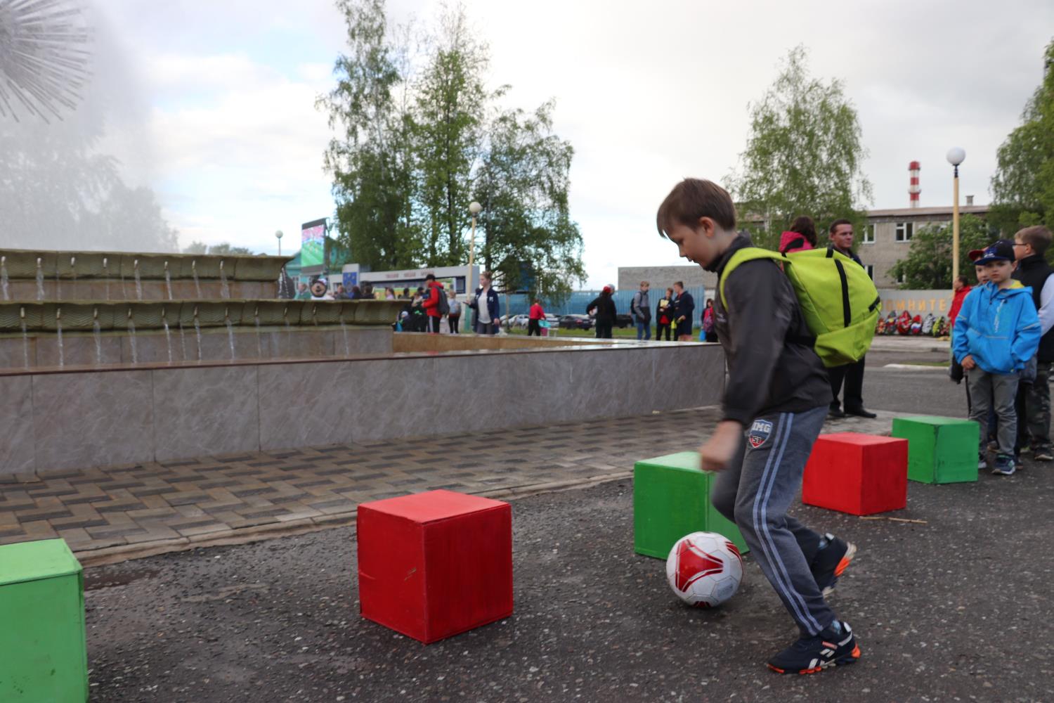 Весь вечер на площади работали спортивные игровые площадки: дети отгадывали загадки, учились тактике ведения мяча с огибанием препятствий, были нападающими и вратарями, рисовали «Аквагримом» флаги Российской Федерации, читали на стенде информацию об истории футбола на малой родине, оставляли автографы на «Стене знаменитостей», получали сладкие призы.