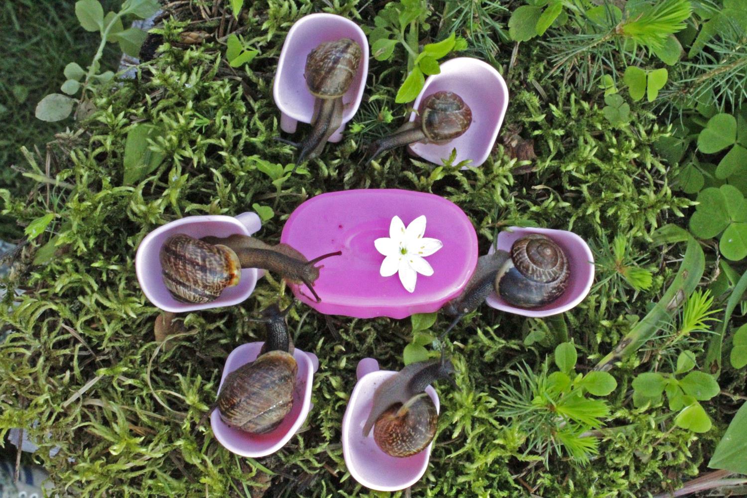 Однажды, прогуливаясь на даче мы краем глаза увидели необычное явление — семья улиток. Но как только мы захотели рассмотреть их поближе, они стали вести себя как обычные улитки. Мы решили устроить за ними фотоохоту, и вот что из этого получилось...