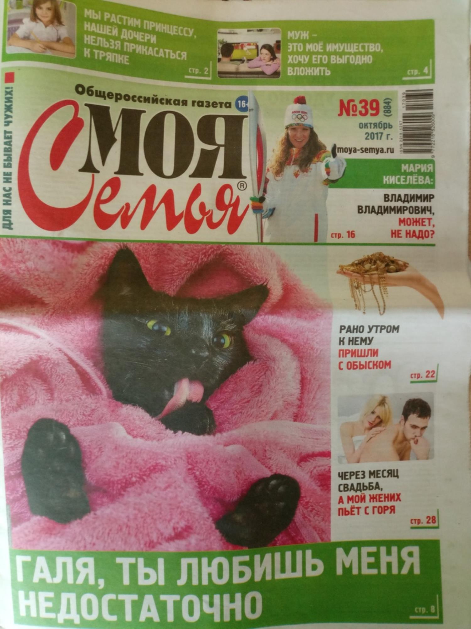 Попросив у продавца последний выпуск газеты «Моя семья», поспешила домой. Каково же было мое удивление, когда я открыла печатное издание. Передо мной лежал номер за октябрь 2017 года. Газета ждала покупателя девять месяцев!