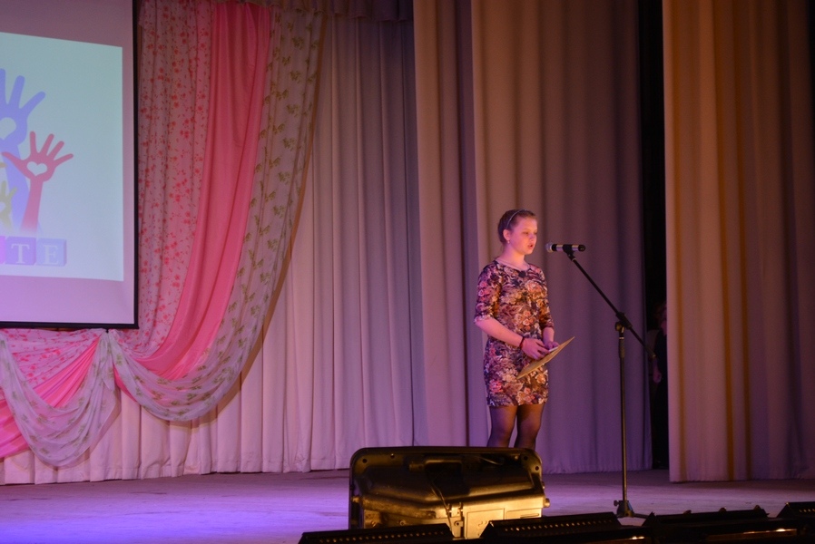На сцене выступили дети с ограниченными возможностями здоровья: Света Колесова прочитала стихотворение Константина Симонова «Жди меня», стихи о Родине Николая Рубцова читала Лиза Новоселова, а Жанна Долганина посвятила своей маме трогательный рассказ собственного сочинения.