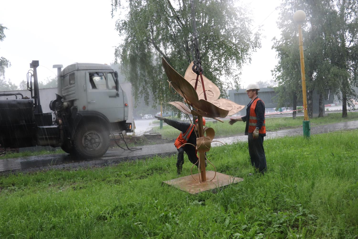 Сегодня работники ремонтно-строительного и транспортного цехов приступили к установке арт-объектов участников конкурса «Металл как искусство» на площади завода, вдоль пешеходной дорожки у мартеновского цеха.