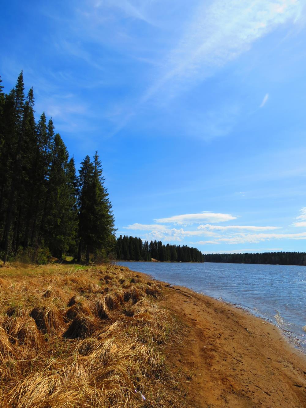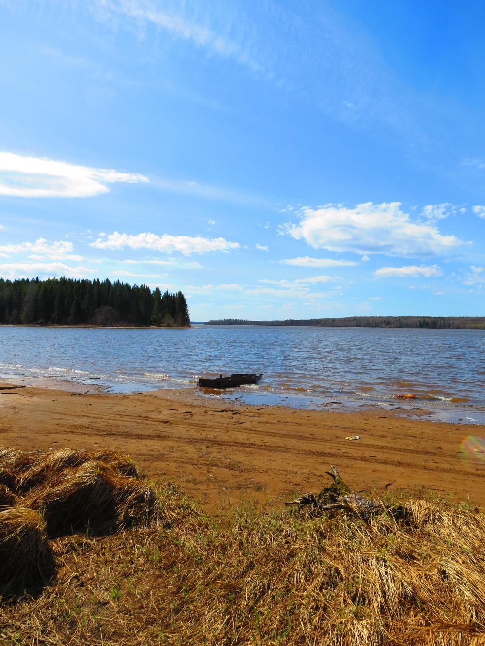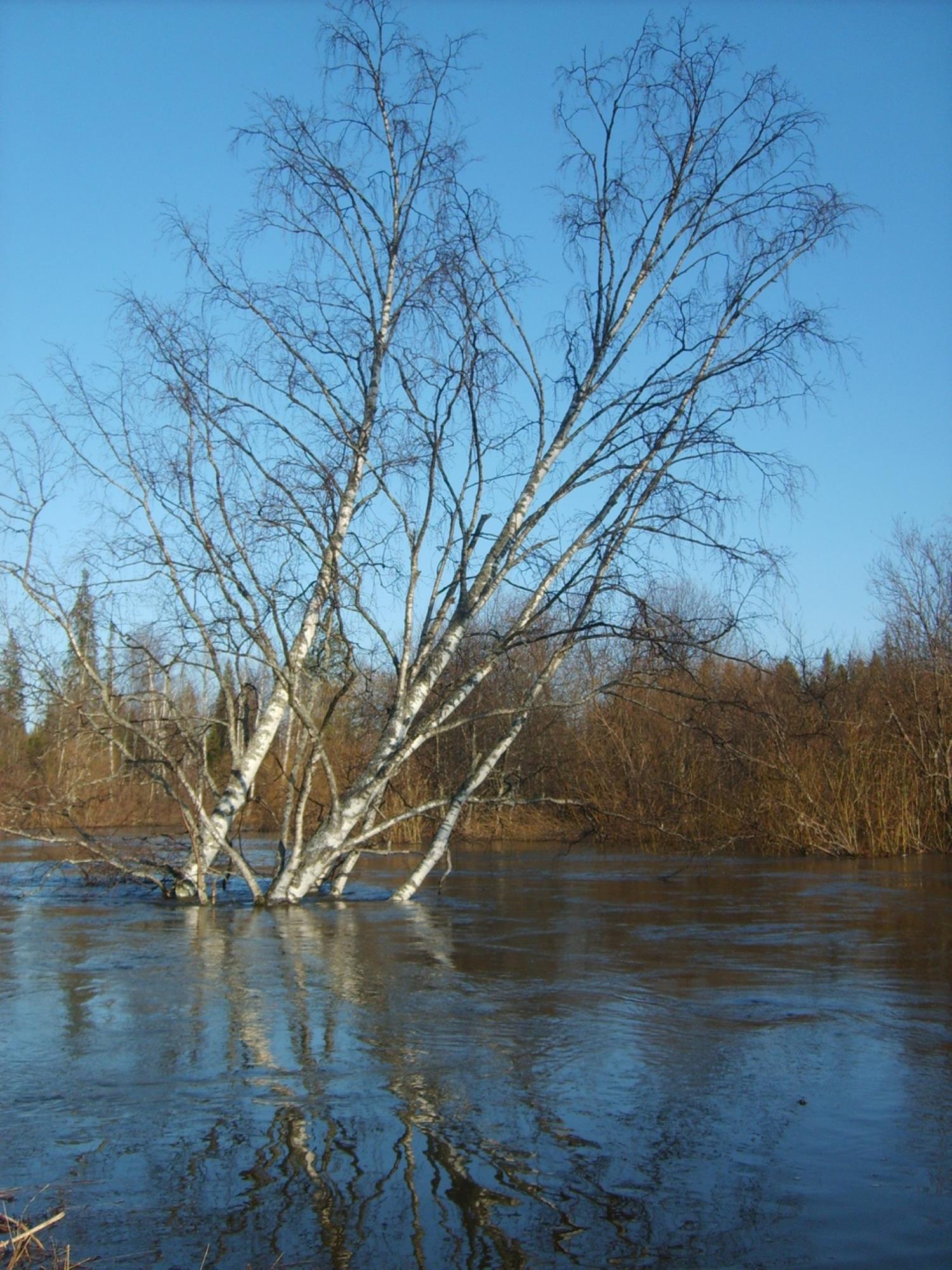 | Половодье на р. Омутной. Данный снимок сделан 3 мая 2009 года во время половодья реки Омутной, близ посёлка Лесозаводской, на перекате, который в народе называют "первый". Раньше взрослые и дети посёлка Лесозаводской купались. Тогда, когда был сделан этот снимок вся поляна была залита водой, и берег обрывается там где берёзы. Зная это я уверено шёл в болотных сапогах по воде до точки - чтоб сделать нужный кадр.