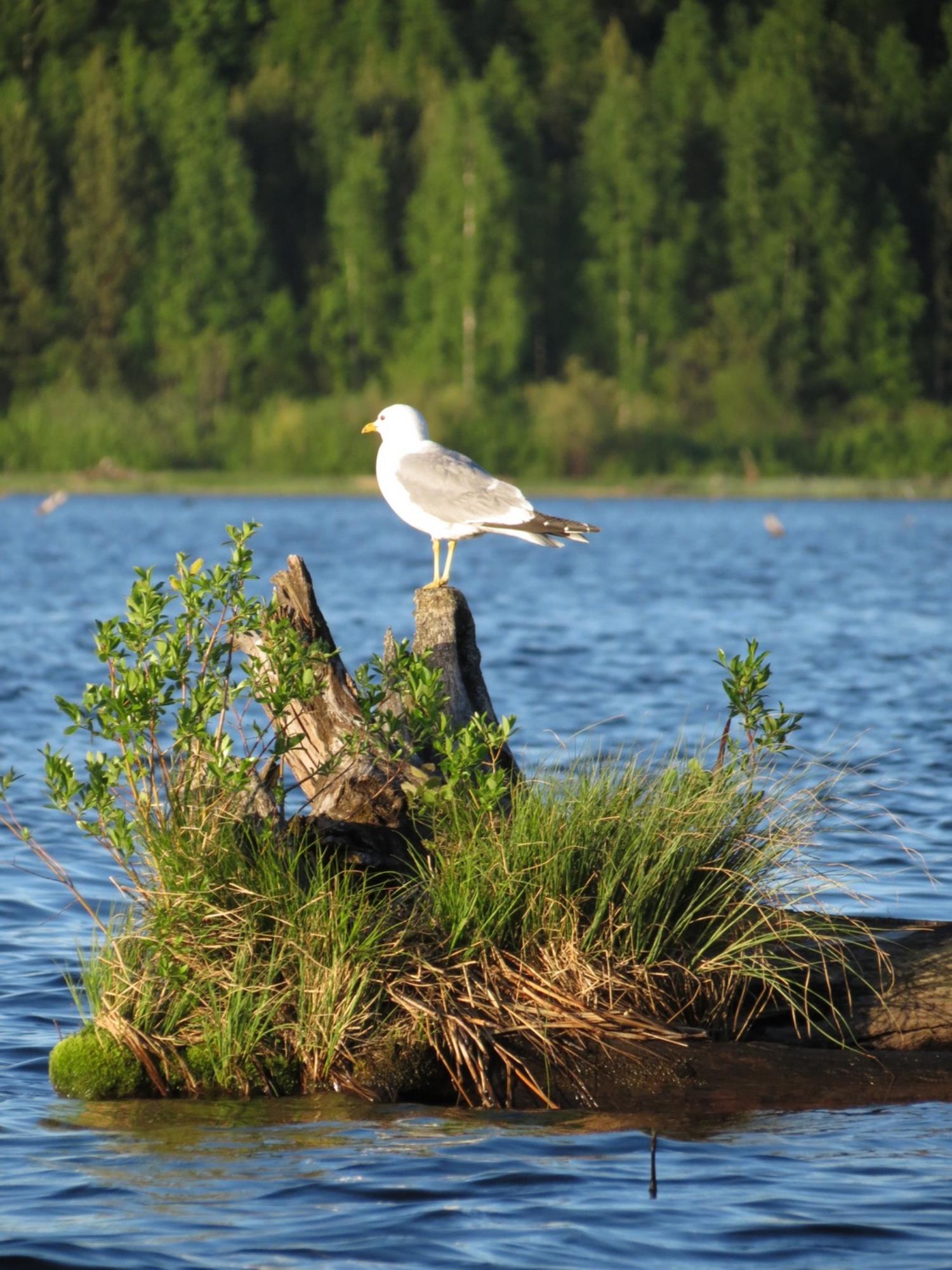 | Сторожит гнездо. Конец мая. Ч.Холуницкий пруд. Фото сделано в последний день мая 2013 года во время рыбалки на пруду. Подплывая к одной из "кочек", мы с другом обратили внимание, что чайки стали кружить вокруг нас и кричать. Мы хотели привязаться к этой кочке чтобы порыбачить. Подплыв - оказалось что там гнездо. Трогать мы его не стали и отплыли от этой кочки. Чайки успокоились и одна из них села рядом. Я сделал этот кадр.