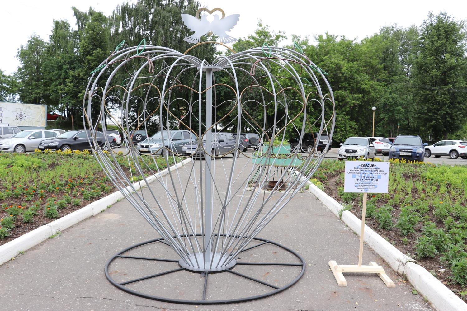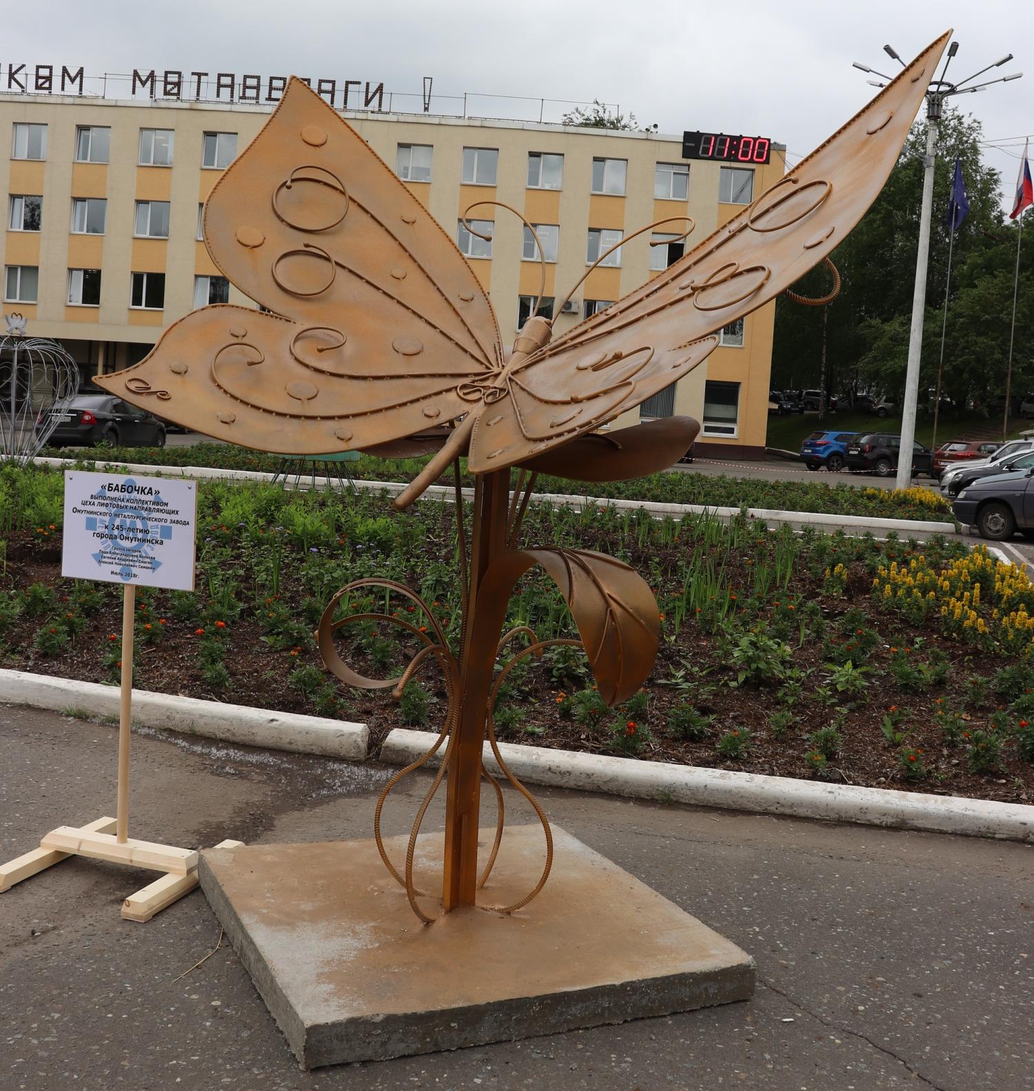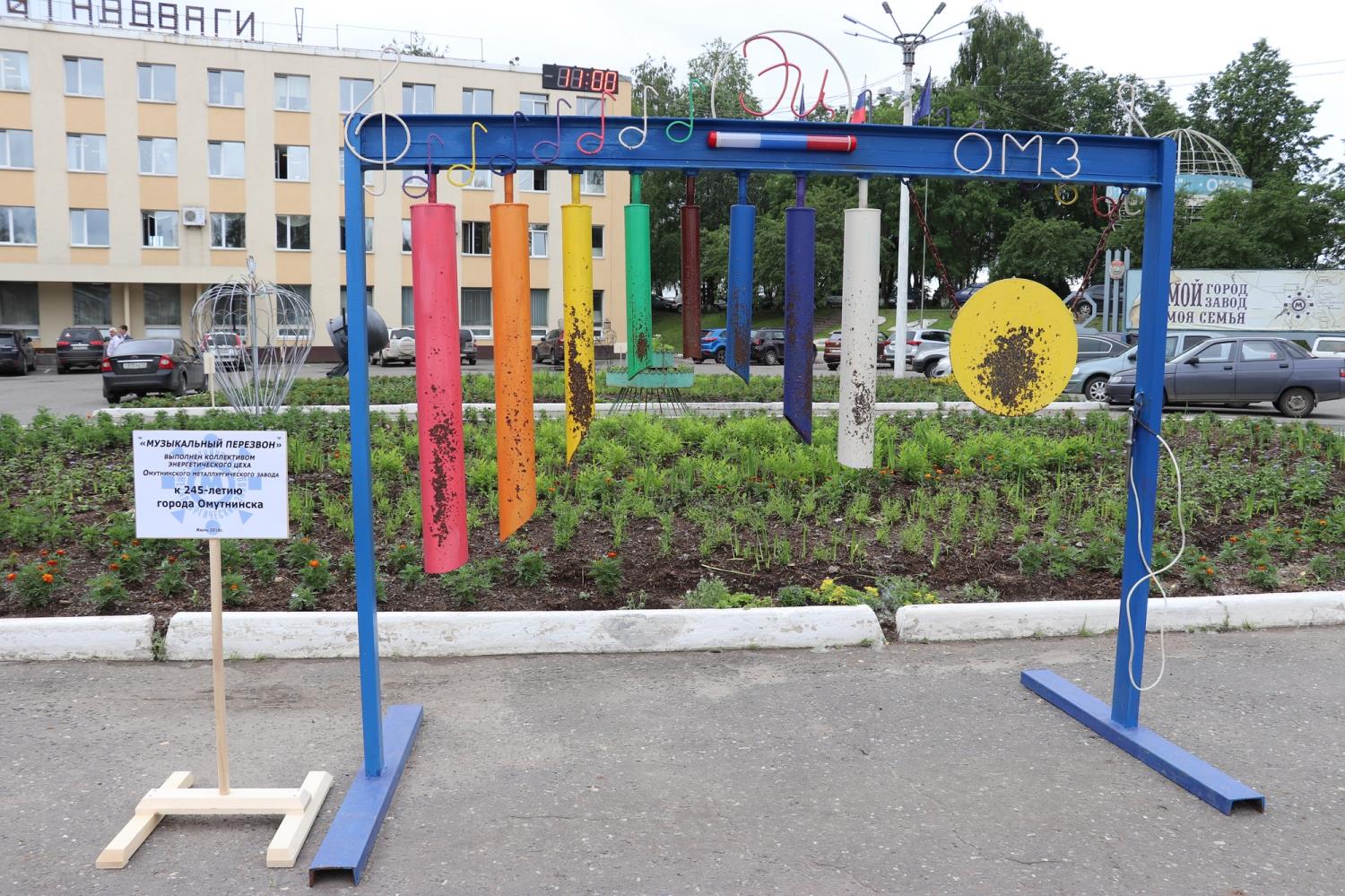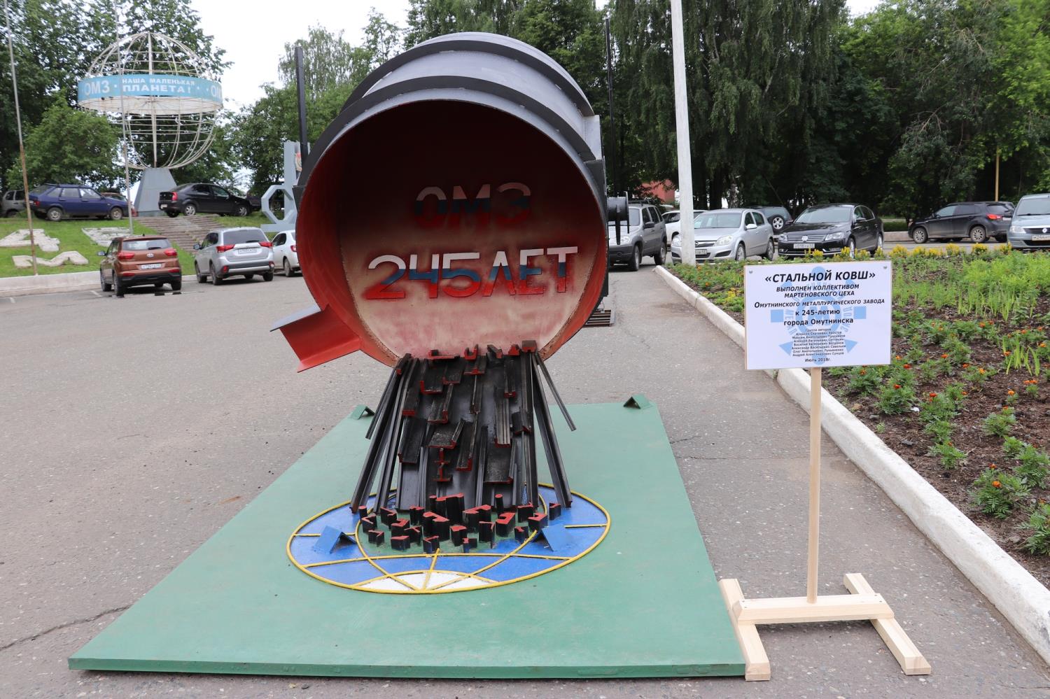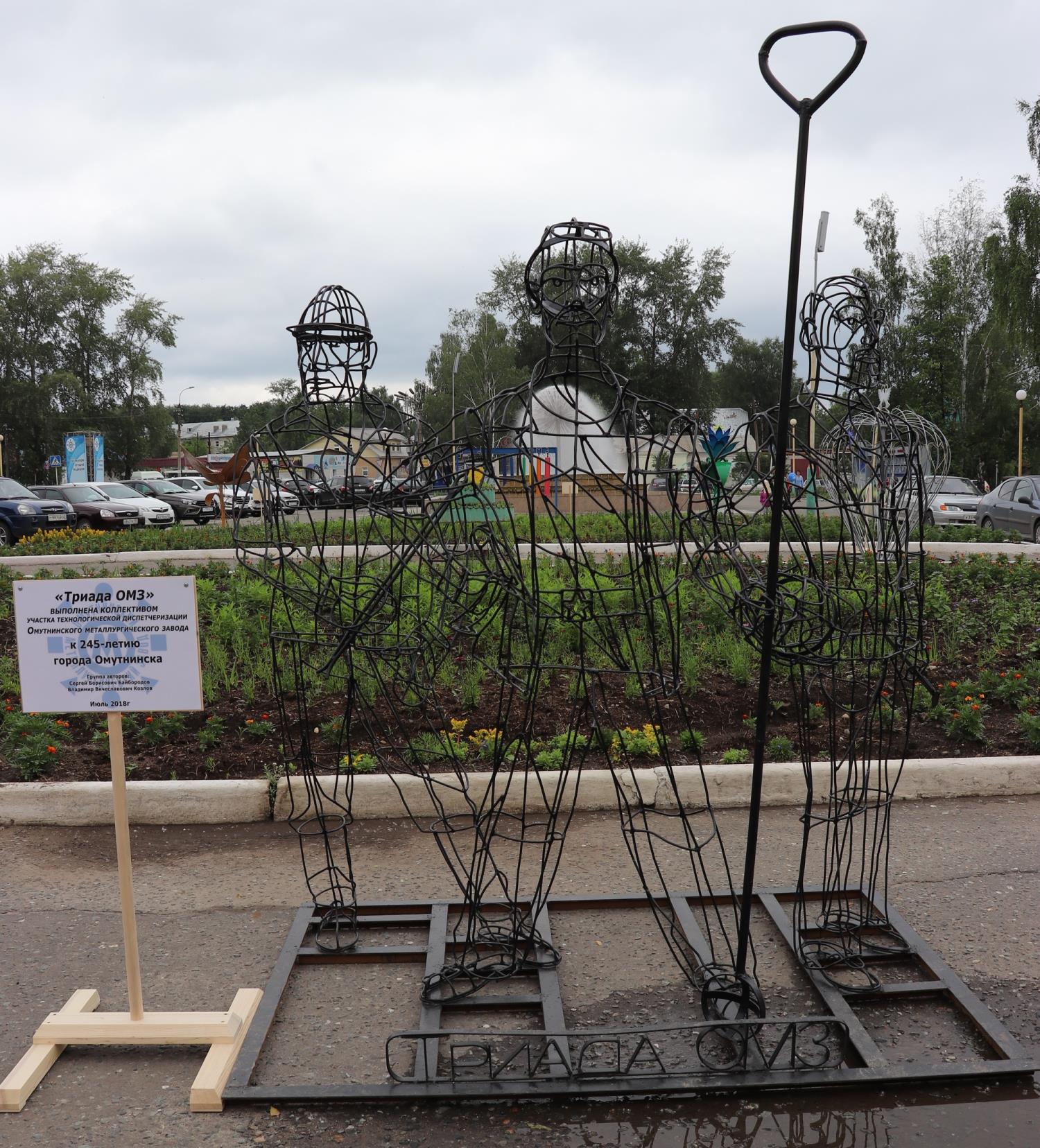Коллектив металлургического завода подготовил к юбилею Омутнинска шикарный подарок. Современные объекты дизайна будут установлены в разных частях города, согласно мнению жителей. Работы участников конкурса «Металл как искусство» пока установлены на площади завода.