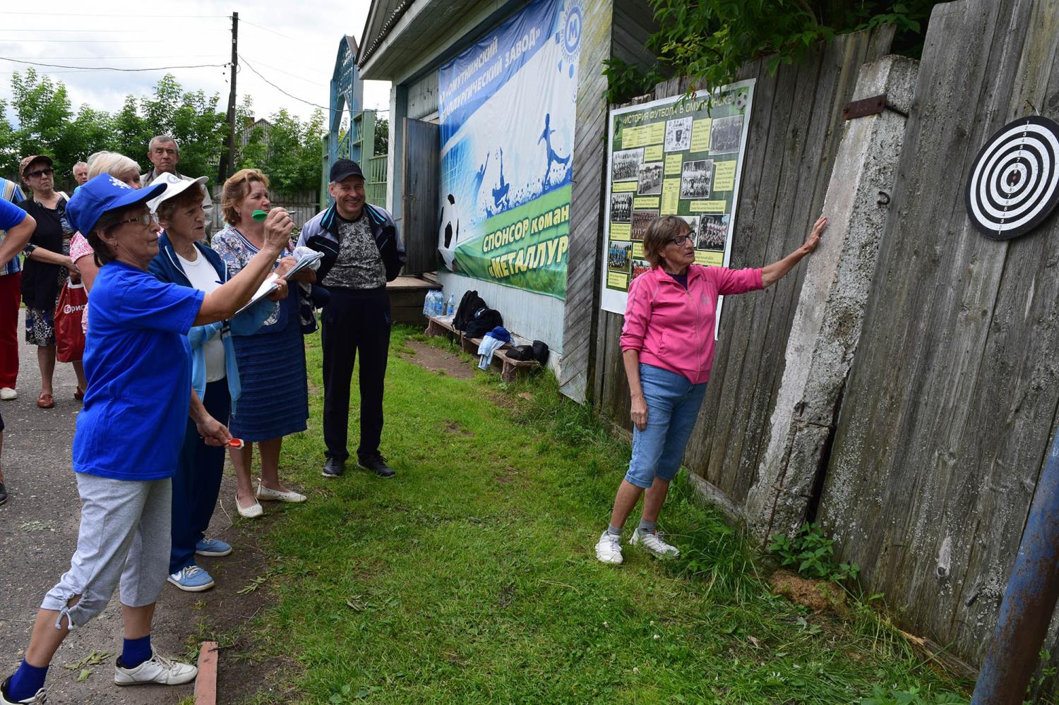 Представители старшего поколения состязались по пяти видам: дартс, отжимание среди мужчин, метание гранаты, бросок мяча в баскетбольное кольцо среди женщин и эстафета.