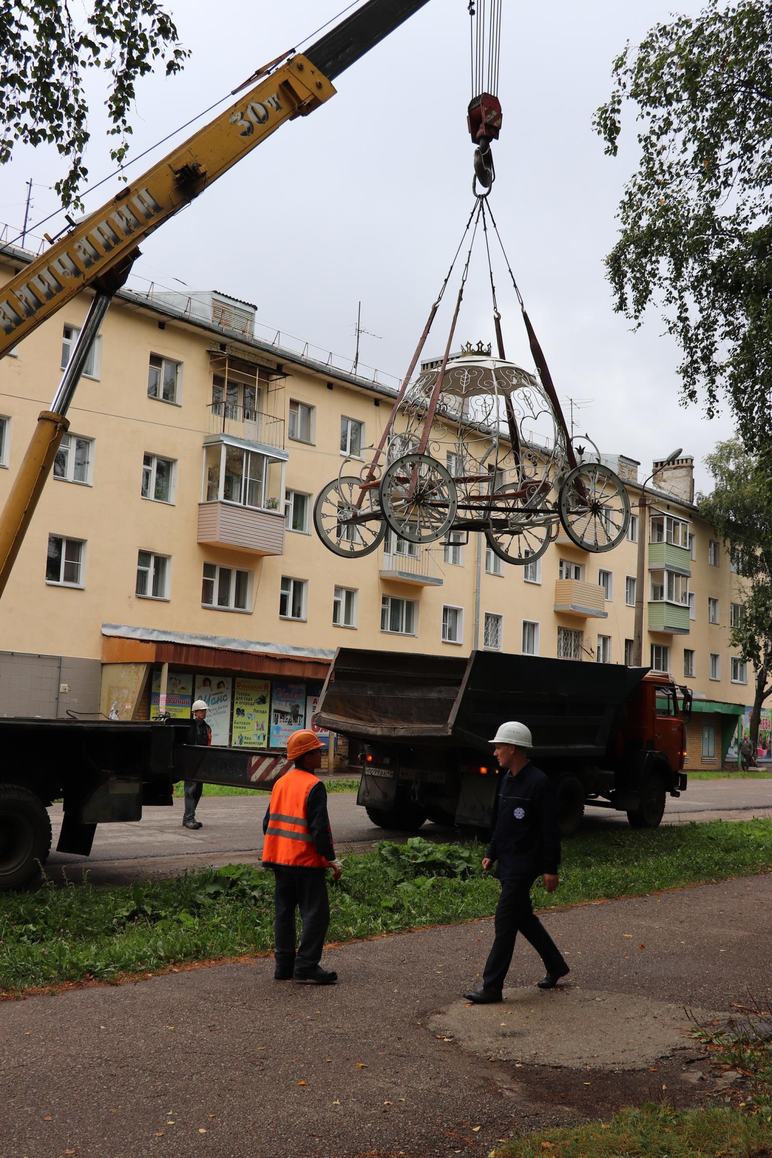 Сегодня работники ремонтно-строительного цеха Омутнинского металлургического завода начали транспортировку арт-объектов на определенные для этого места.