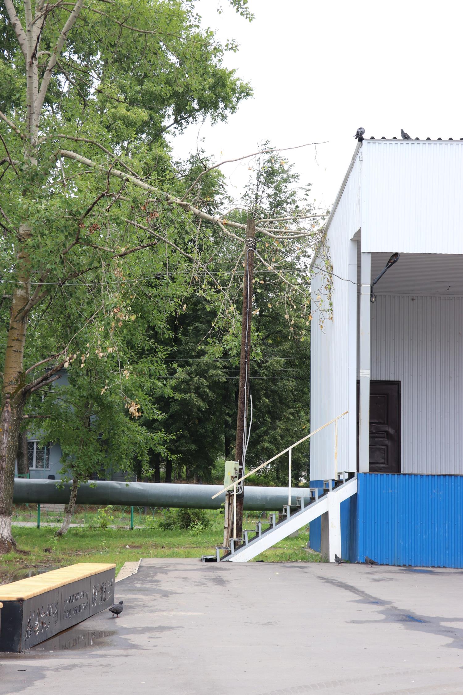 Последствия одного из таких посещений до сих пор видны в парке ДК. Одна из веток тополя упала на новую крышу сцены. Несмотря на то, что разрушения незначительные хотелось бы напомнить властям города, коммунальным службам и надзорным органам о том, что такое безобразие в местах массового отдыха многих омутнинцев и детской площадки просто не допустимо!
