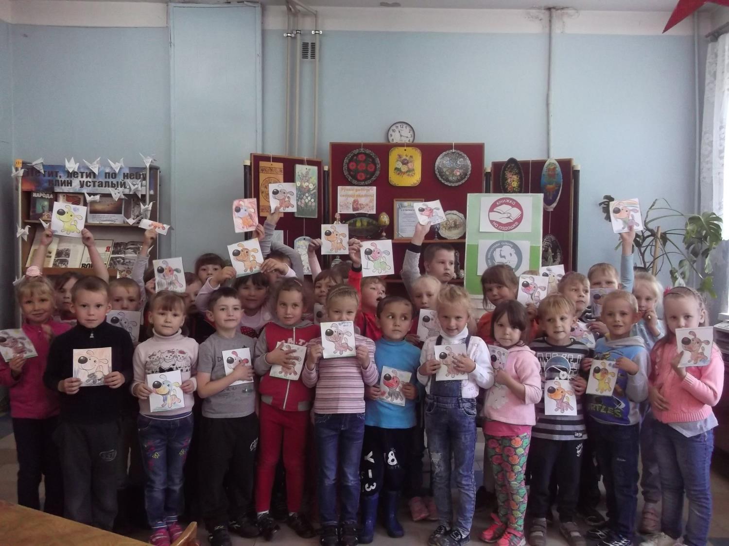 С большим удовольствием дети слушали веселые истории, приключившиеся с собачкой Соней. Она так понравилась ребятам, что дети охотно справились с раскрашиванием портрета главной героини книги. Затем дошколята познакомились с книжной выставкой «Такие разные собаки» и выполнили творческие и интеллектуальные задания к ней. В завершение встречи был показан одноименный мультфильм, и книга «Умная собачка Соня» была выдана воспитателям для того, чтобы дочитать детям в группе. Для юных читателей в библиотеке также оформлена тематическая полка книг «Веселый выдумщик Андрей Усачев».