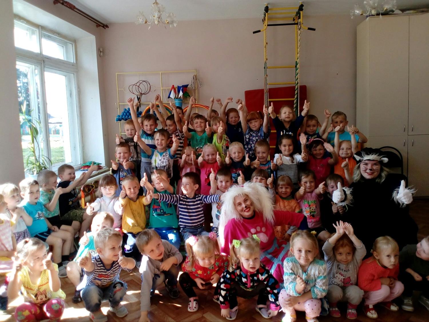 Дети из детских садов «Теремок», «Аленушка» и «Росинка» также приготовили подарки для бездомных животных. Роза Барбоскина и Черный кот пришли к ребятам в гости, чтобы поблагодарить их за помощь и, конечно, остались немного поиграть и повеселиться.