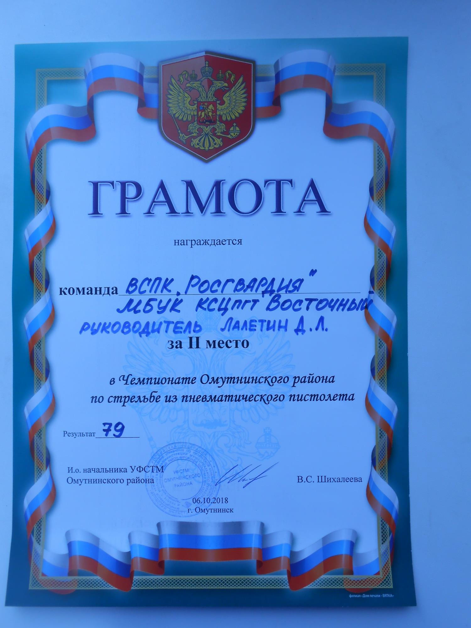 В сентябре этого года в Культурно-Спортивном центре пгт Восточного начал работу военно-спортивный патриотический клуб "Росгвардия" под руководством майора полиции, ветерана боевых действий Лалетина Дмитрия Леонидовича .Начались занятия по строевой подготовке и стрельбе.