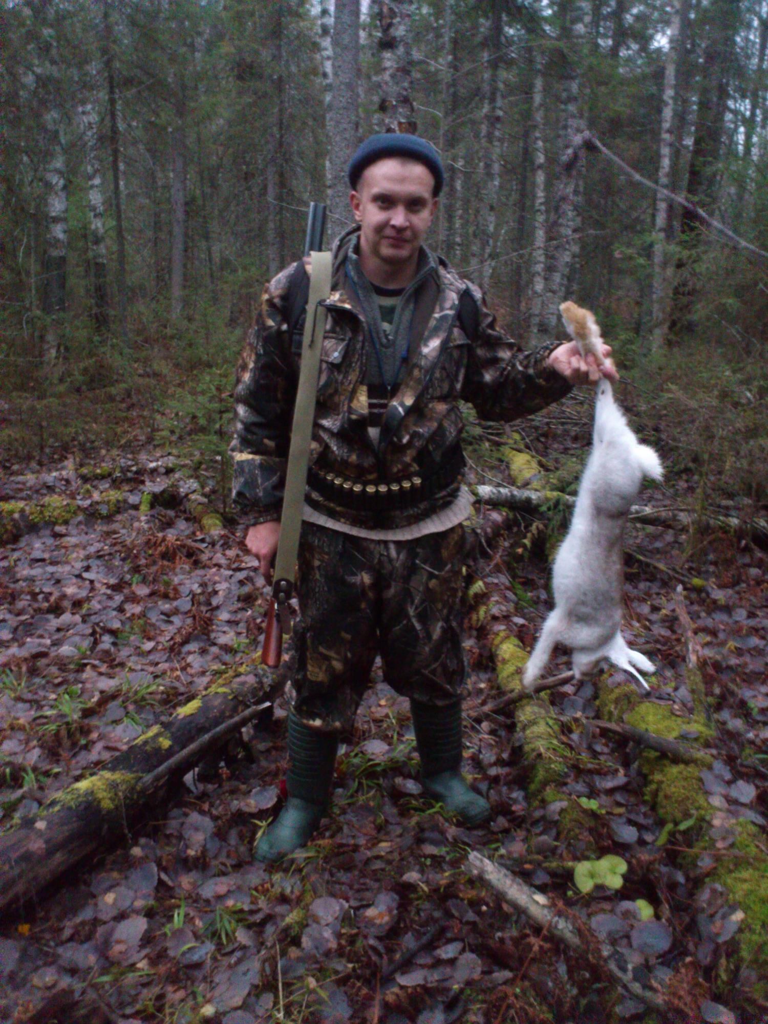 И вот, сделав малый круг, Джек выгоняет косого на лесную дорогу. Разойтись не успели, стоим втроем: два «Ежа-43» и «Мурка-155». Вот он... Среди елей, ивового и березового подроста белой молнией промелькнул косой. Еще мгновение и он выскочил на лесную дорогу в пяти метрах от нас, еще не зная, какое испытание ему приготовила судьба... Ураганом по лесу пронеслось эхо пяти выстрелов, оставляя косому шанс уйти, скинув петлю, укрыться в непролазном валежнике. В стволе последний патрон, последняя надежда, последний шанс. Выстрел в угон... в воздухе повис терпкий запах сгоревшего пороха, затих шелест листвы под пушистыми лапами, замолк Джек… Спасибо, Байянай!