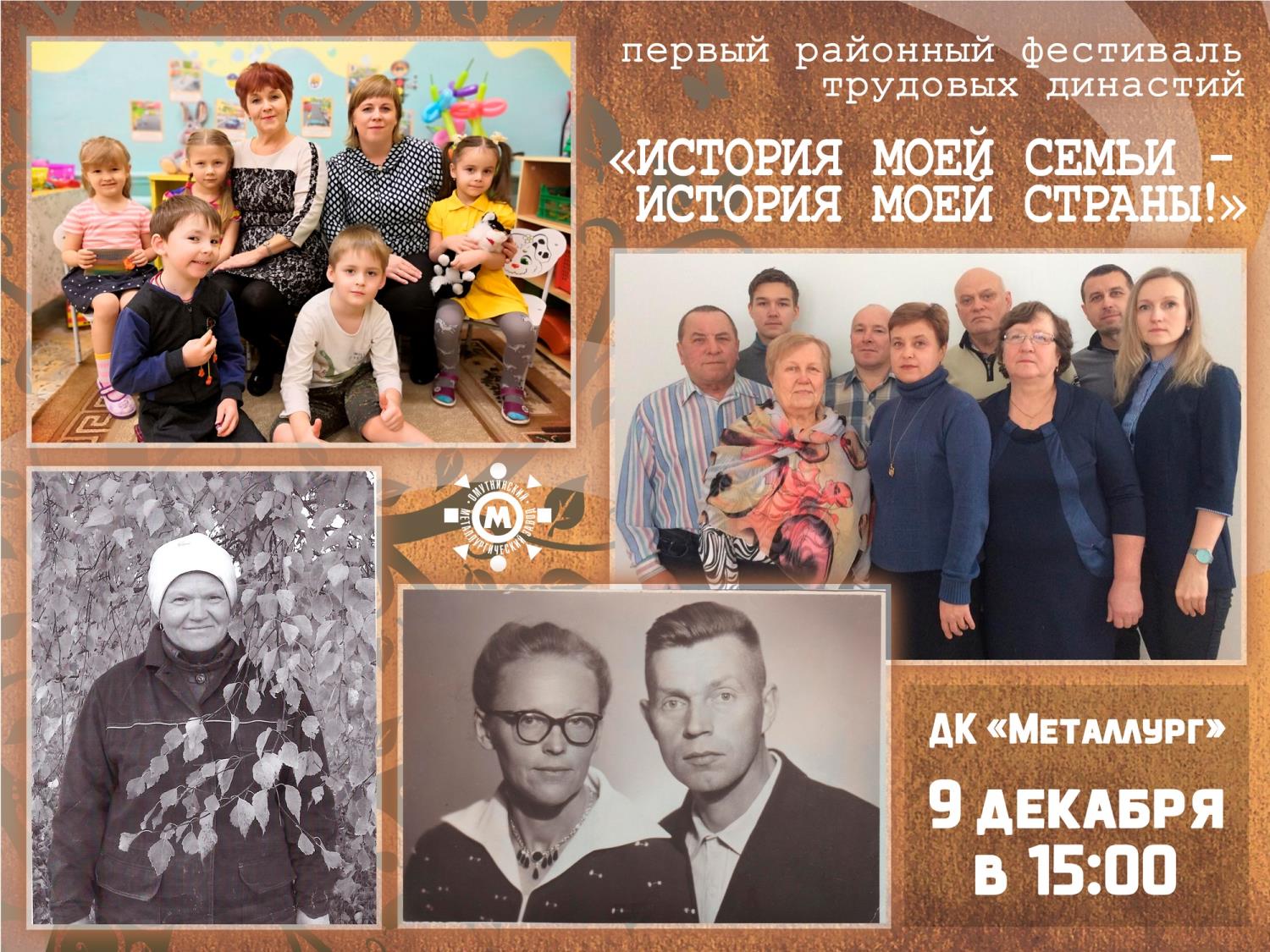 В ближайшее воскресенье в ДК «Металлург» состоится районный фестиваль трудовых династий «История моей семьи — история моей страны». В нем примут участие десять семей из разных поселений района. Фестиваль организован Омутнинским металлургическим заводом.