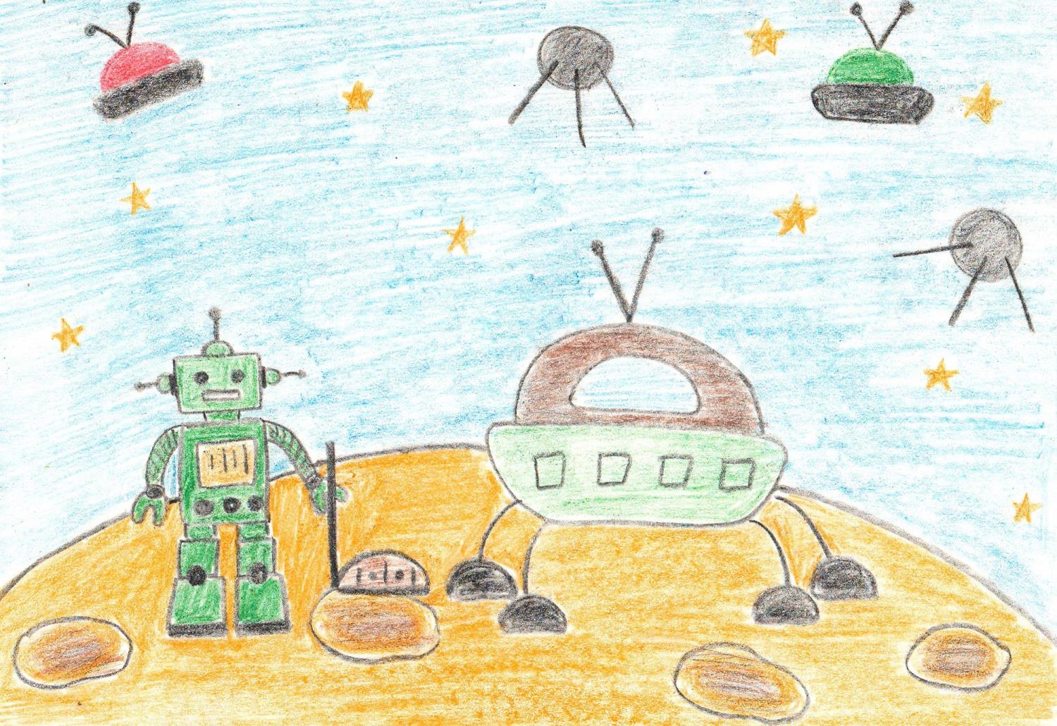 Ребята в рисунках представляют, каким может быть наше будущее через двадцать, пятьдесят, сто, а может быть, и тысячу лет. Кто или что будет помогать человеку жить в новом мире. Детям представлялась возможность пофантазировать о роботах, которые не только бы радовали людей, но и выполняли различную полезную работу по пяти направлениям: космическая, металлургическая, медицинская, строительная и транспортная робототехника.