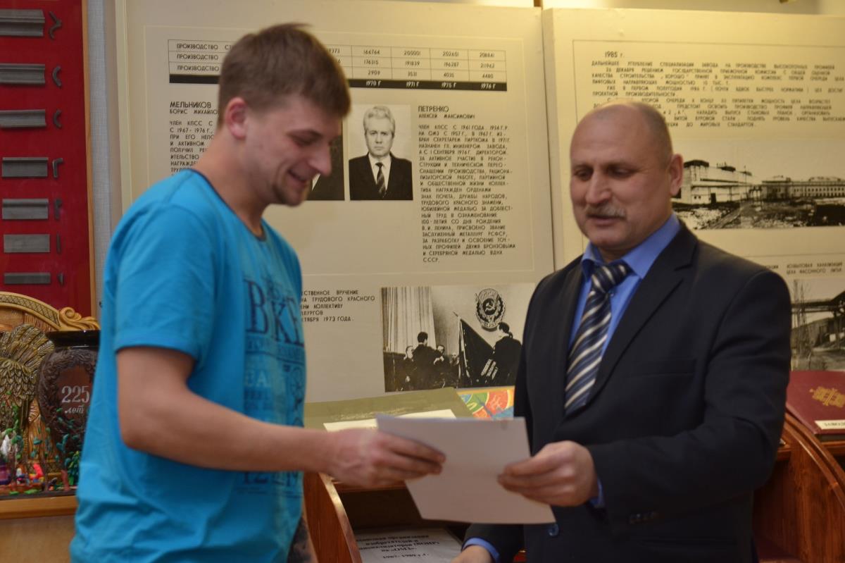 26 декабря в зале музейно-выставочного центра завода депутат Омутнинской районной думы, начальник цеха лифтовых направляющих В.Ю. Варанкин поздравил участников открытого творческого конкурса видеопоздравлений «Фейерверк поздравлений».