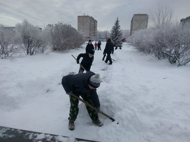 Первый субботник уже состоялся. Курсанты почистили снег, чтобы жители поселка смогли идти на площадь с разных сторон.