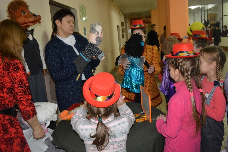 Мероприятия начались с самого утра 21 января. Первыми в театральную атмосферу окунулись дети. Они отправились в путешествие по сказочным городам в поисках ключей от заколдованного ларца. Юные путешественники раскрасили театральные маски, почувствовали себя настоящими актерами, сыграв сказку «Репка», исполнили несколько танцев, разгадали мультяшные головоломки. Ребята справились со всеми заданиями, отыскали ключи и смогли открыть ларец. А внутри их ждал приятный сюрприз – билеты на спектакль театра кукол «Сказка» «Ай да Мыцык!», который вызвал смех и радость маленьких зрителей.