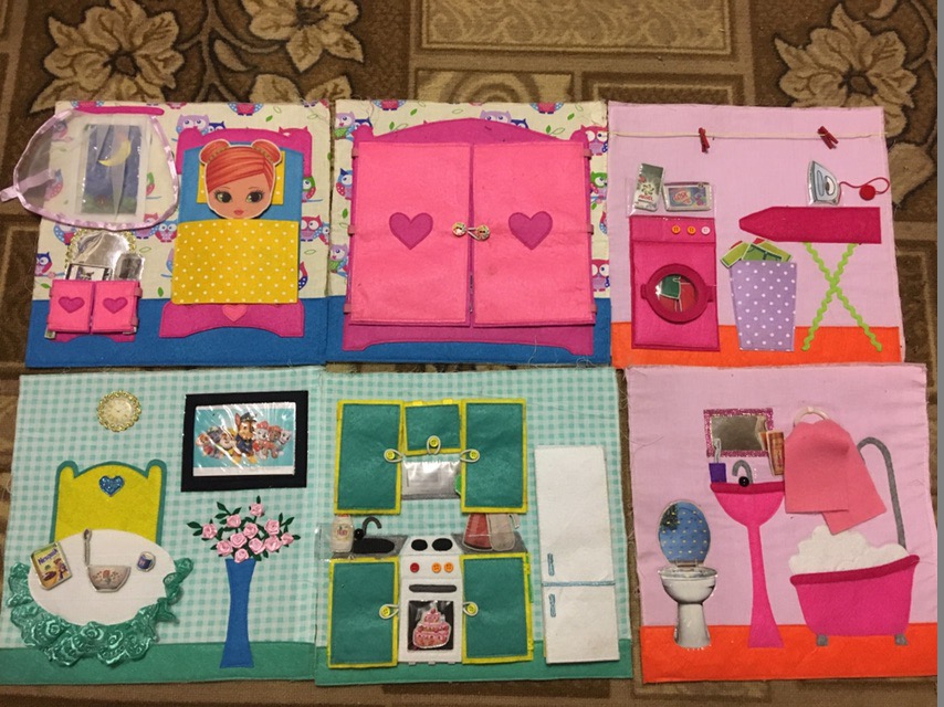 Вторым моим увлечением является- шитье развивающих книжек из фетра. Также узнала об этом виде рукоделия на форумах в интернете, будучи в отпуске по уходу за младшей дочерью. К сожалению, в связи с нехваткой времени и трудоемким процессом шитья «развивашек», делать их получается все реже, чем творить бантики.