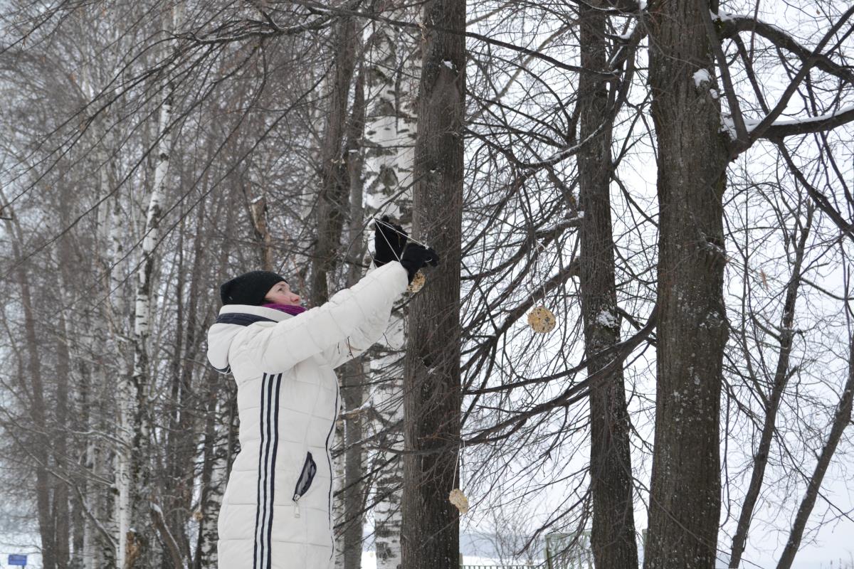 Активисты Союза молодежи совместно с ребятами подготовили сделанные ранее «кормушки-печеньки» и развесили угощение для птиц на заводской площади и городской набережной.