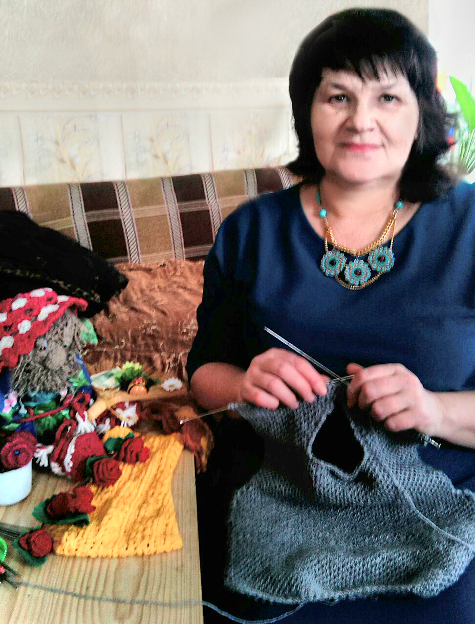 Моя бабушка научила меня вязать на спицах, когда я ещё не умела писать. Потом я освоила вязание крючком, но на этом не остановилась, увлеклась вышивкой крестиком. А когда вышла замуж, свекровь научила меня технике объёмной вышивки. Мы вместе творили: от дорожек на пол, до настенных ковров. Сейчас, на пенсии, вышиваю картины бисером, которые дарю родным.