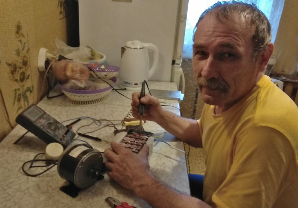 Дома, на даче, на работе по максимуму модернизирую технику, улучшаю или полностью делаю с нуля. В данный момент я увлечен подготовкой к лету (на фото со мной), занимаюсь оснащением велосипеда электродвигателем (аккумулятор, схема управления, электродвигатель), не всегда же постоянно хочется крутить педали. Смастерил точилку мотопилы, чтобы не снимая цепь, можно было с легкостью ее наточить. Хотелось легкие и мягкие, удобные к постоянному использованию бинокулярные очки – в чем же дело, пожалуйста…