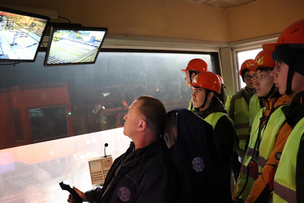 Маршрут проходил от участка мартеновских печей, через участок внепечной обработки стали и рабочую площадку МНЛЗ. Загрузка металлолома, пышущие жаром печи и большие чаны с расплавленным металлом завораживают школьников.