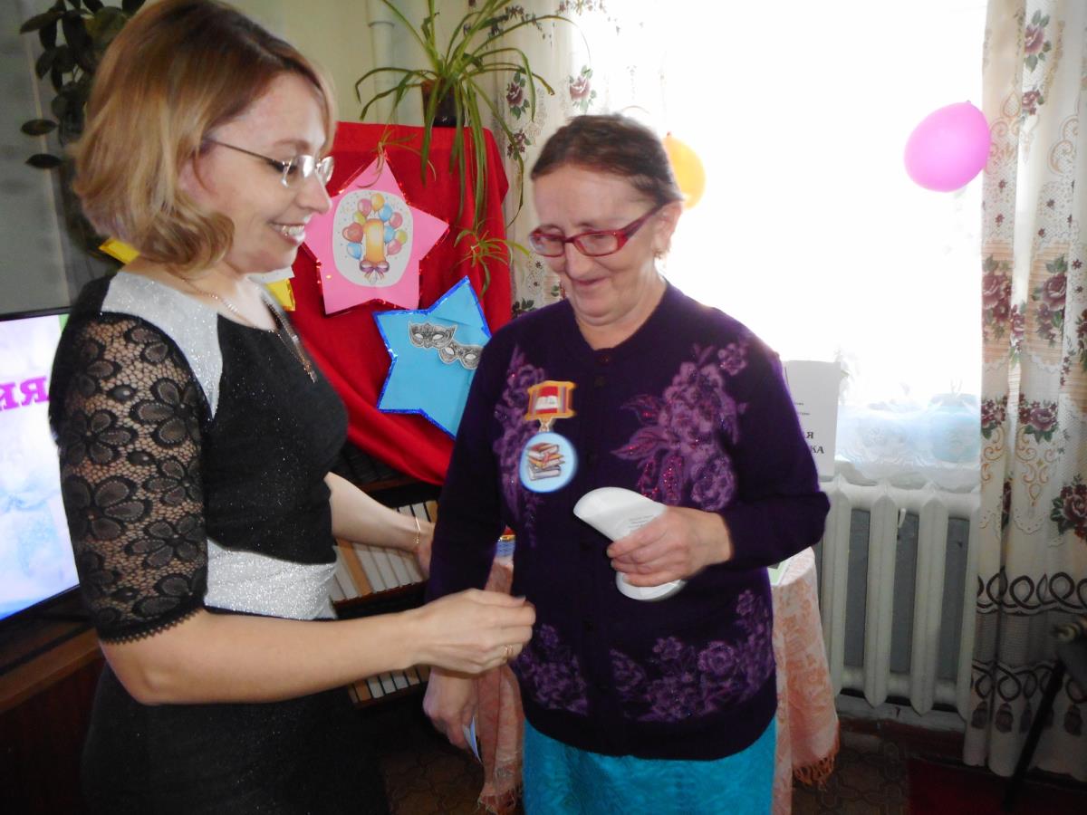 На празднике были вручены читательские билеты. Билет за №1 вручен главе администрации Юрию Анатольевичу Шитову. Зрители тоже не остались без подарков – отвечающие на вопросы в сказочных викторинах «Из какой сказки эти фразы» и «Сказка-перевертыш» получили магниты и медальки «За правильный ответ». Прекрасным оформлением праздника стали песни в исполнении Юрия Маракулина, подарившие радость всем присутствующим. Кроме того весь вечер звучали стихи В.А. Труфакина, слова о книге и профессии библиотекаря, слова благодарности читателям. Завершился праздник дружеским чаепитием с тортом.