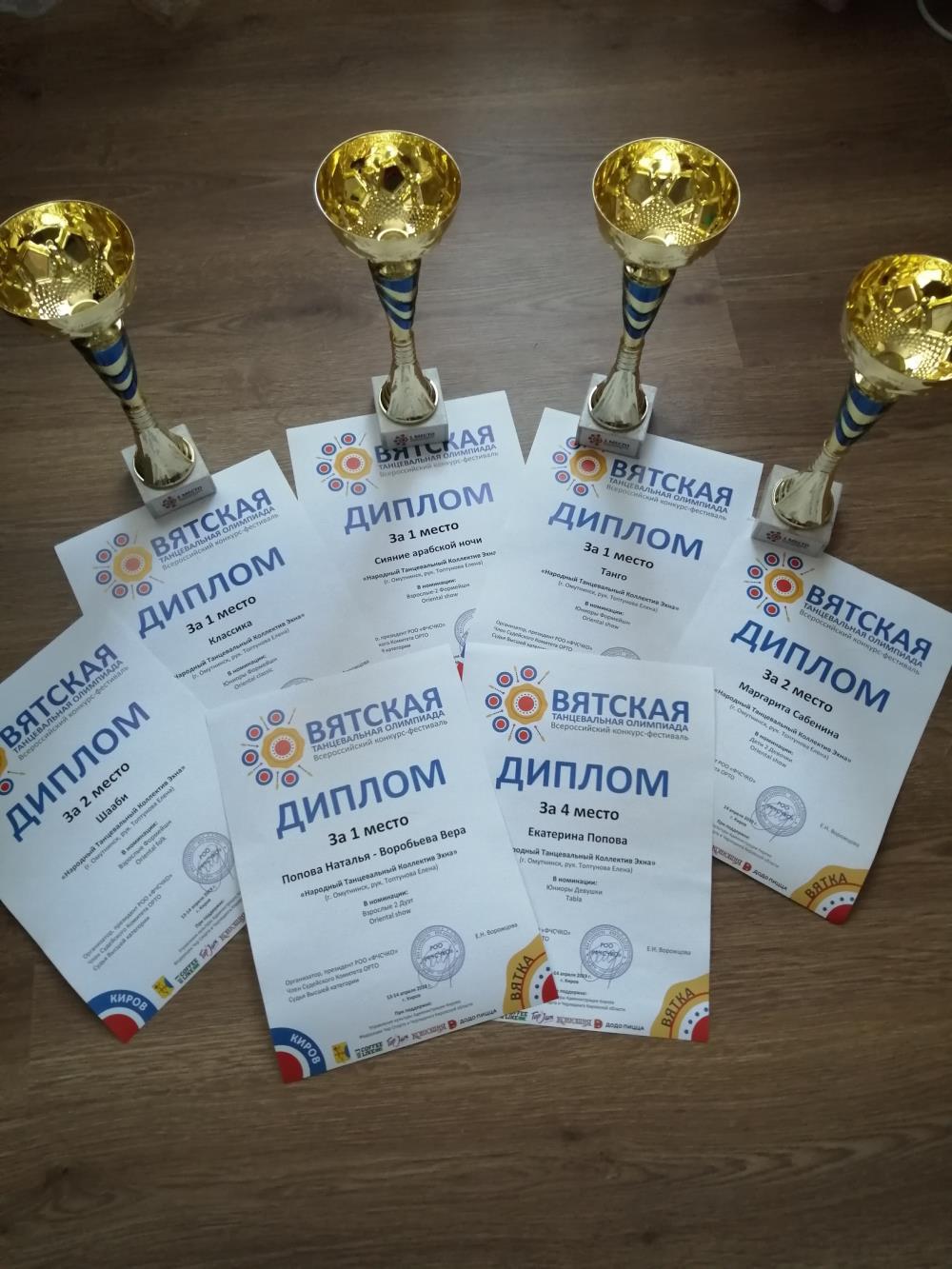 Результаты коллектива впечатляют - четыре кубка и три медали. Участницы ансамбля заняли первое место в номинации «Шоу формешн юниоры» с танцем «Танго», в номинации «Шоу формешн взрослые» с танцем «Сияние арабской ночи», в номинации «Ориенталь формешн юниоры» с танцем «Классика» и в номинации «Шоу дуэты взрослые» с танцем «Нежность». Второе место участницы «Эхны» завоевали в номинации «Фольк взрослые формешн» за танец «Шааби», солистка Маргарита Сабенина также получила медаль за второе место в номинации «Шоу ориенталь дети». Екатерина Попова заняла четвертое место в номинации «Табла юниоры».
