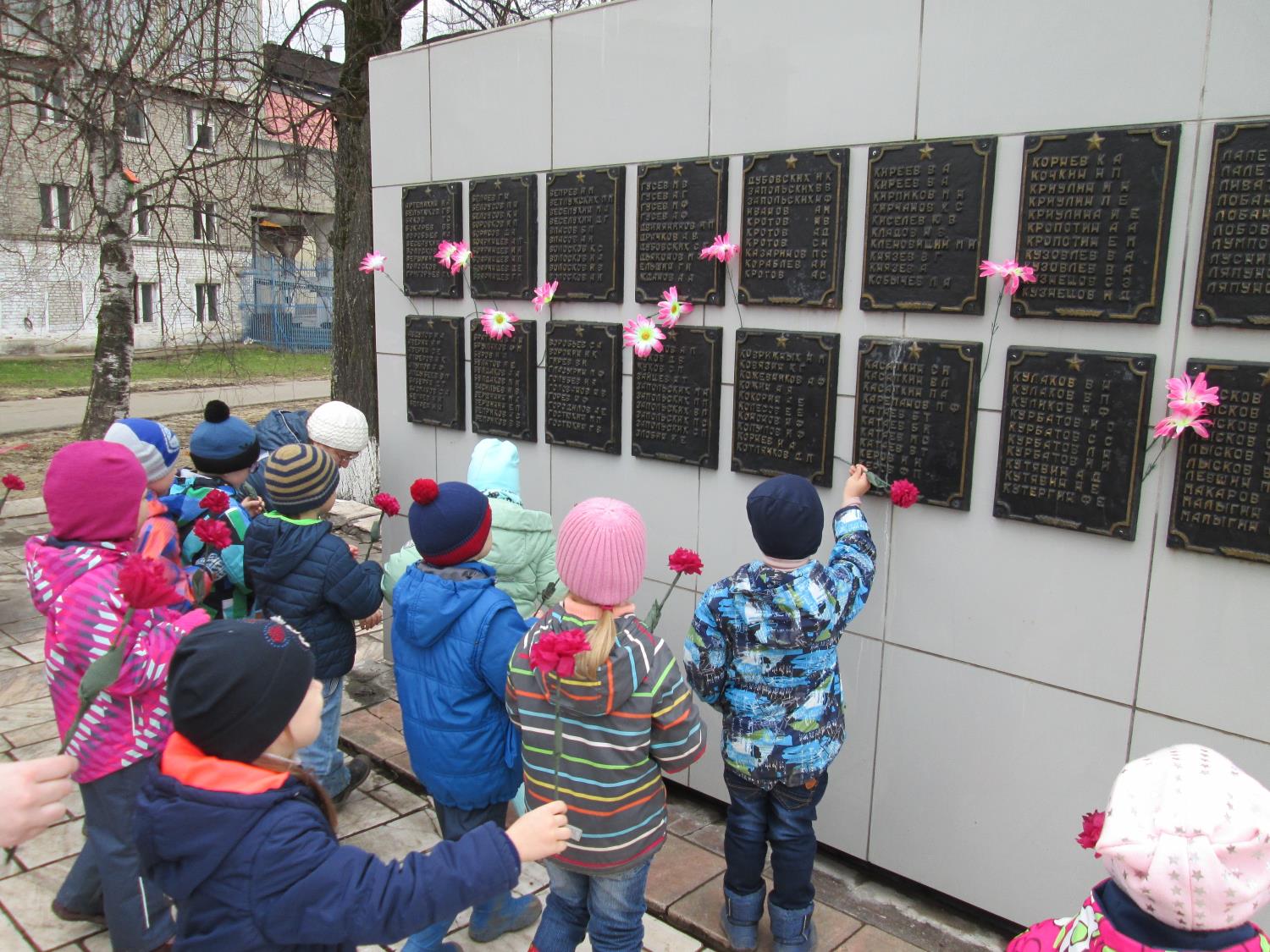 Для этого мы с ребятами в группе сами делаем красные гвоздики из салфеток или цветной бумаги, а 8 мая отправляемся на экскурсию к Вечному огню. Здесь мы рассказываем стихи о Великой Победе, узнаем о погибших в войне, а в прошлом году узнали об омутнинцах – Героях Советского Союза. Это было здорово!
