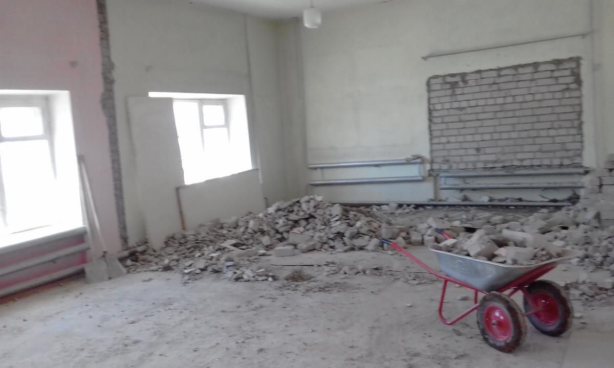 В настоящее время специалисты слободской фирмы «Атлант» разбирают в помещении перегородки. На первом этаже здания разместятся комната сотрудников охраны, несколько учебных классов, компьютерная комната, подсобные помещения и туалеты. Предстоит также провести перепланировку остальных помещений, полностью заменить системы отопления, водопровода, канализации и оконных блоков.