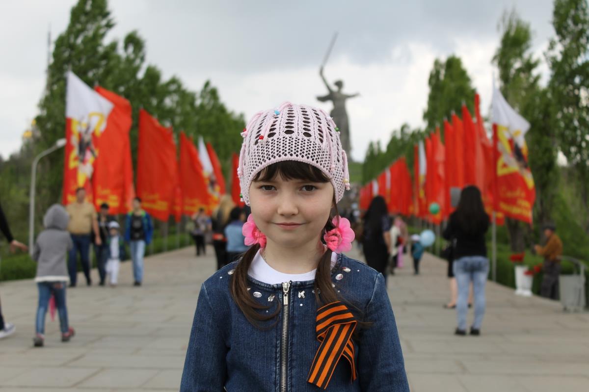 При посещении города-героя Волгограда прямо на вокзале мы увидели миниатюру, посвященную Дню Победы. Вместе с мамой и папой нам удалось прикоснуться к истории, и я даже посидела на мотоцикле времен Великой Отечественной войны.