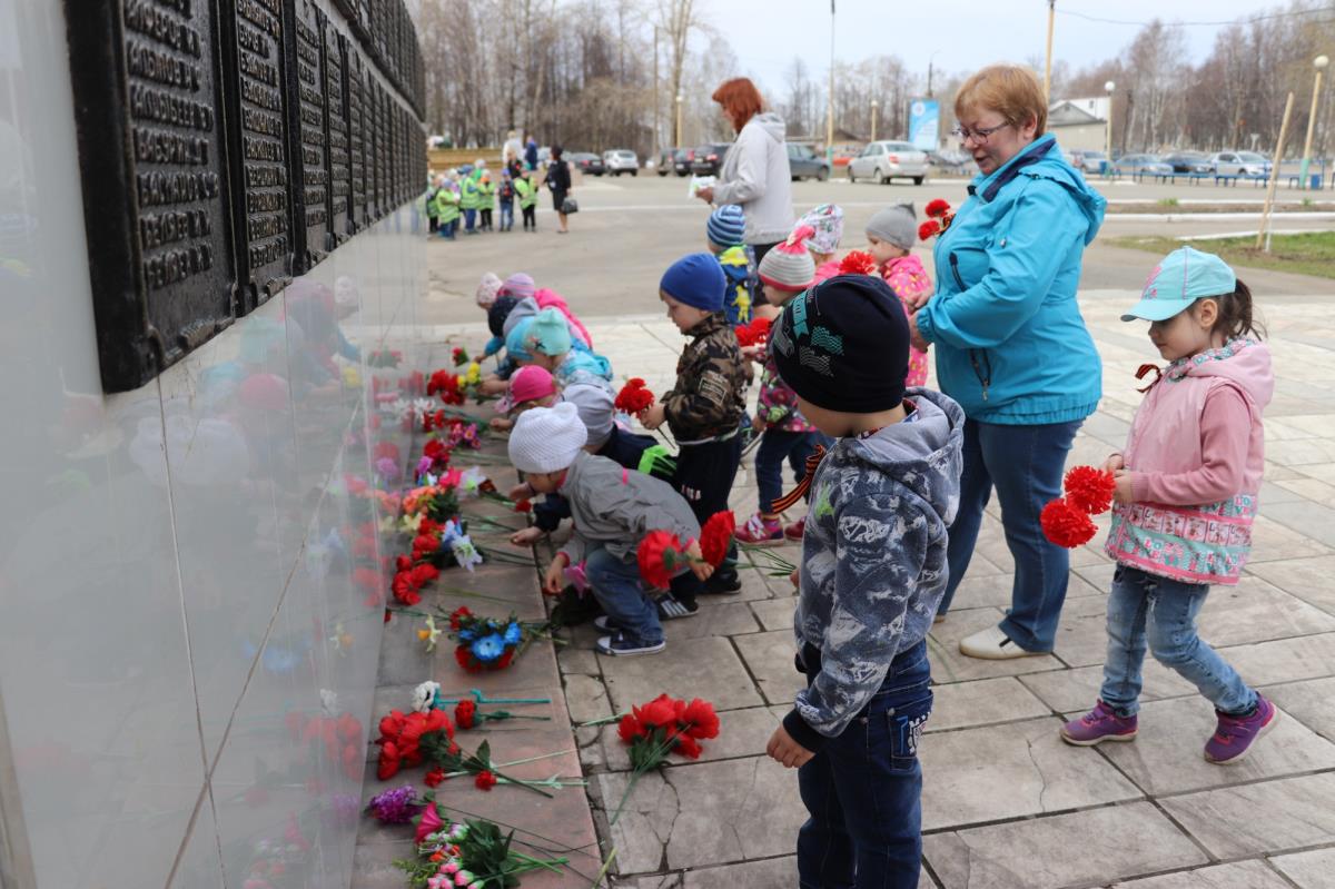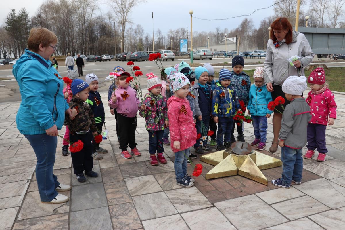 В преддверии главного праздника ребята из омутнинских детских садов «Малыш» и «Теремок» отправились к памятнику Воину-освободителю на заводской площади.