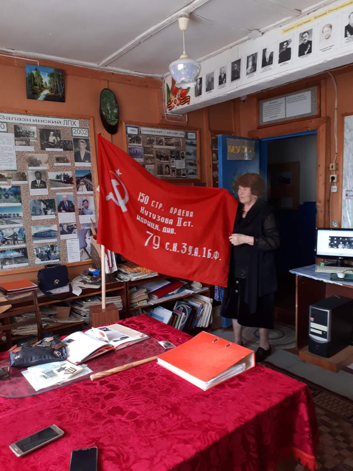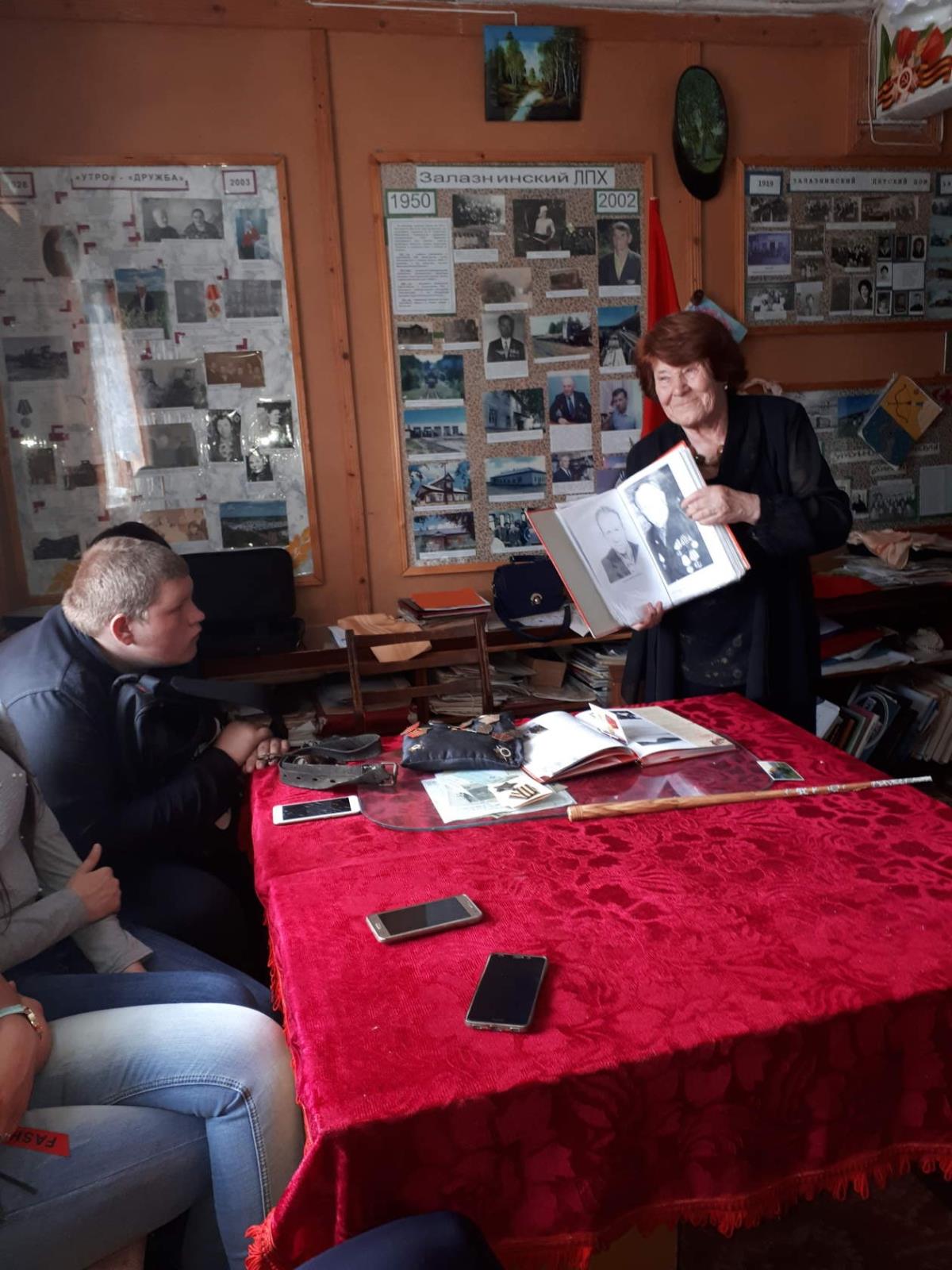 Хранительница музея Людмила Викторовна Трапезникова рассказала подрастающему поколению о земляках – героях Великой Отечественной войны. Подростки узнали, сколько горя выпало на долю залазнинцев, почтили минутой молчания павших в годы ВОВ.