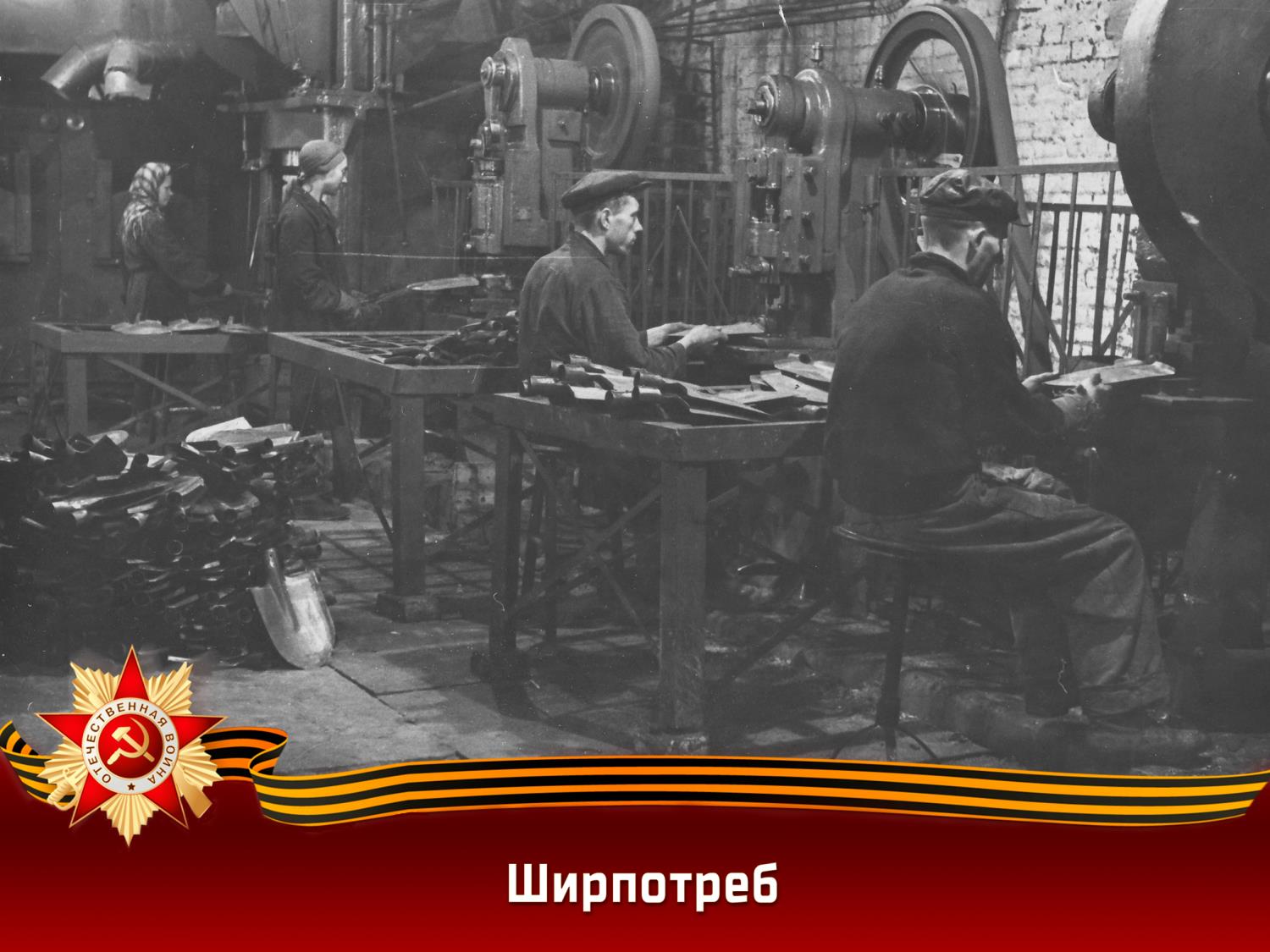 Цех ширпотреба под руководством И.Ф. Бандакова изготавливал ведра, саперные и пехотные лопаты, заготовки к противотанковым минам, лимонкам и фугасам, ломики и прочее солдатское снаряжение, используемое для строительства оборонительных сооружений. Уже на седьмой день войны первая партия шанцевого инструмента была отправлена по назначению. По сравнению с довоенным временем производство выросло в 14 раз. Высокие результаты пока-зывала комсомольско-мо-лодежная бригада А.П. Шулакова, выполнив план на 280 и 369 процентов.