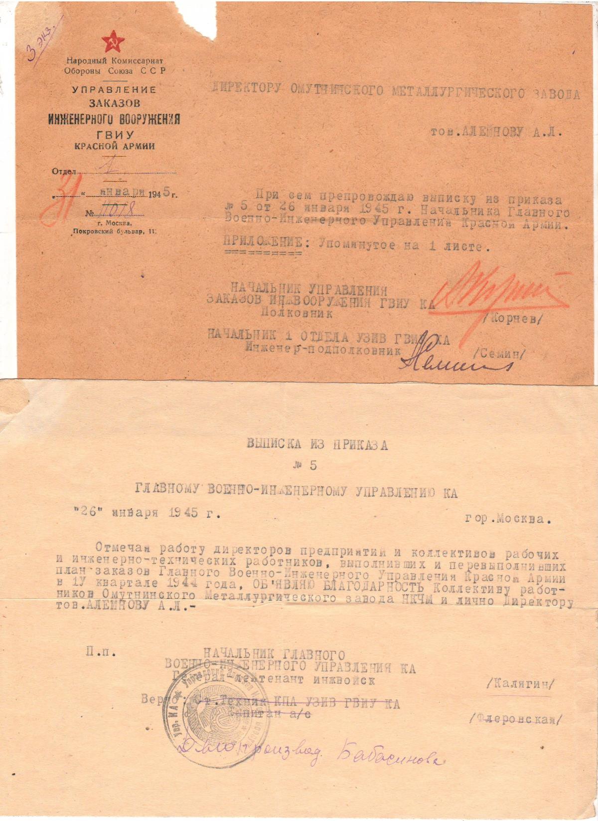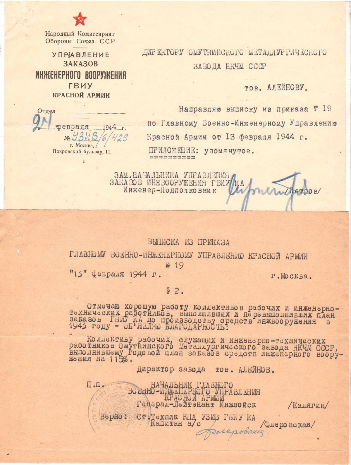 Заказы, заверенные подписью Сталина