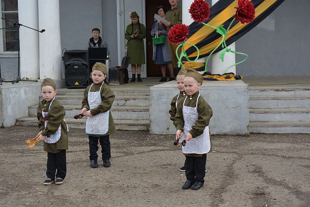 Участники фестиваля продемонстрировали танцы, стихи, песни, литературно-музыкальные композиции, театрализованные постановки на военную тему. Прохожие останавливались, чтобы присоединиться к праздничному представлению. И яркое солнышко, и артисты радовали зрителей.