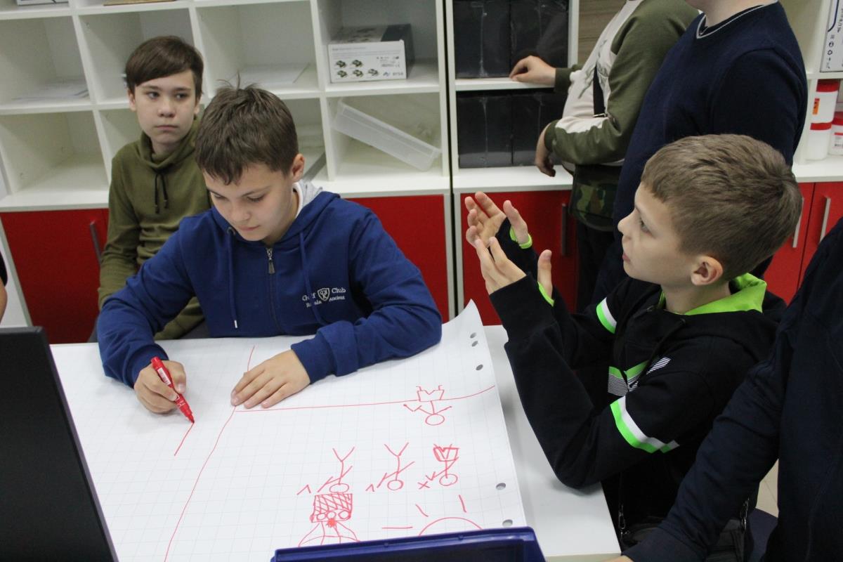 Наставник Робоквантума Дмитрий Ваганов рассказал о современной робототехнике. Вместе с педагогом-организатором Ниной Шивриной ребята провели игру на отработку новых лексических единиц «Crocodile». Логические задачи решили вместе с наставником Хайтека Дмитрием Шиляевым.