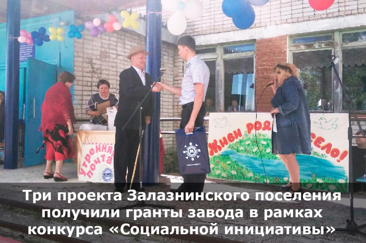 Депутаты С.А. Бердников, В.Ю. Варанкин, С.Г. Нижегородов, С.Ю. Курков выехали в Залазну, Ежово, Белореченск, Восточный, Черную Холуницу, чтобы поздравить с Днем России, юбилеем района и вручить гранты завода. Общий фонд конкурса «Социальная инициатива» составил 250 тысяч рублей. Победителями стали 24 проекта омутнинцев. Они направлены на благоустройство поселений, создание комфортной среды, развитие спорта, культуры, волонтерского движения. В ближайшее время жители приступят к реализации своих инициатив.