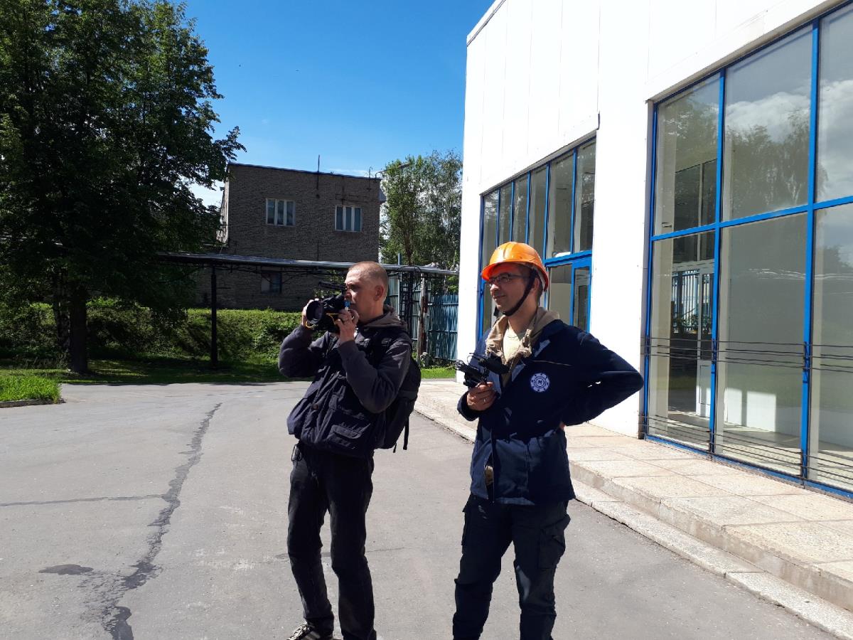 Заслуженные работники культуры С.А. Зиновьев и Ю.Н. Бакулин работают над созданием фильма о металлургическом заводе.