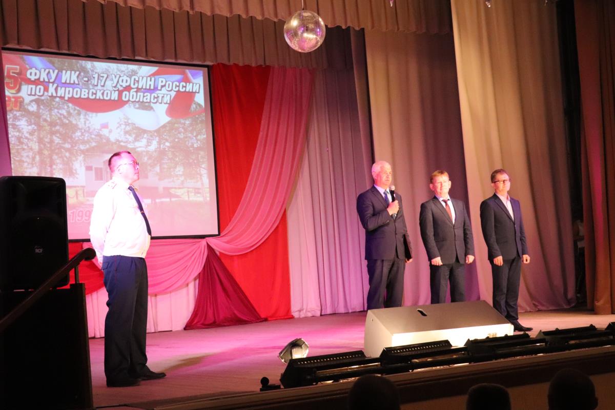 Коллектив и ветеранов учреждения поздравили врио начальника УФСИН России по Кировской области А.Н. Коновалов, региональный министр энергетики и ЖКХ И.Ю. Редькин, депутат Заксобрания области, финансовый директор АО «ОМЗ» А.Н. Уткин, главы района и города В.Л. Друженьков и И.В. Шаталов. Яркие творческие номера приготовили сотрудники ДК «Металлург».