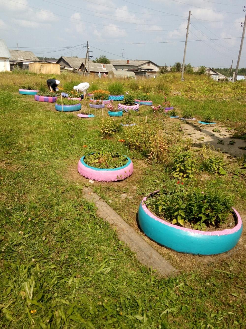 – Весной жительницы деревни под руководством работницы медучреждения Галины Исуповой оборудовали клумбы и высадили цветы. Мы решили продолжить благоустройство. Односельчане принесли краски и колеры, кисточки и растворитель, – рассказала Василиса Дмитриевна. – Пока женщины красили вазоны из шин, Юрий Крантов и Николай Ситчихин отремонтировали дорожку возле ФАПа. Доски для этого бесплатно предоставил местный предприниматель Иван Керов.