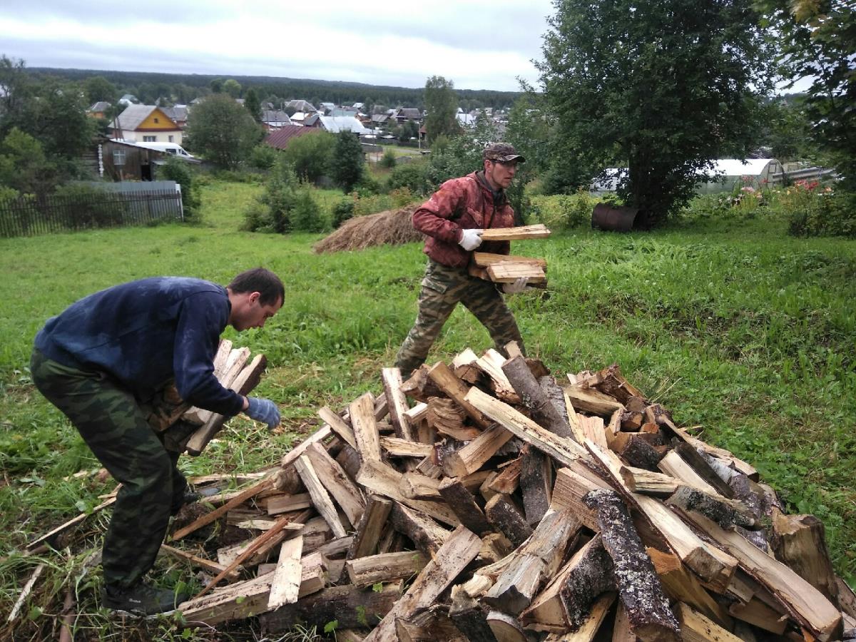 Ребята с радостью оказали помощь по уборке дров на придомовой территории.